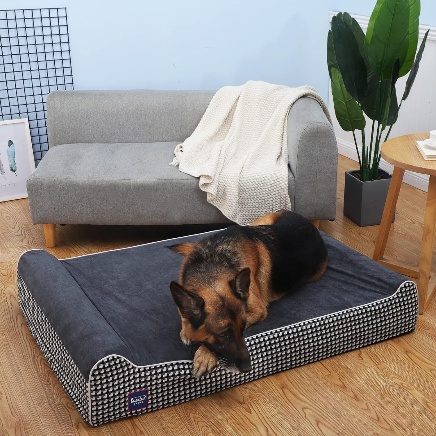 Laifug Orthopedic Memory Foam Extra Large Dog Bed with Pillow and Durable Water Proof Liner & Removable Washable Cover & Smart Design