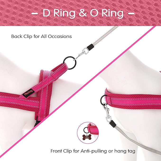 Didog No Pull Dog Harness with Soft Mesh Padded,Reflective & Quick Fit Light Weight Dog Strap Vest Harness,Easy for Walking Training (XS:Chest 15-18", Mesh-Hot Pink)