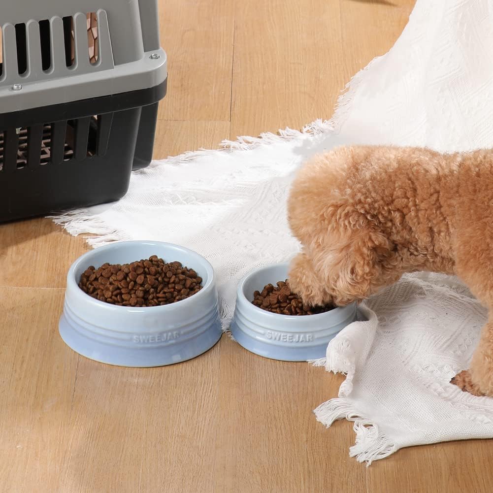 - Non Skidding - SWEEJAR dog bowls are made of food grade porcelain, microwave & dishwasher safe, easy to clean. The ceramic is heavy to help keep the bowl upright when dog eat food. No messy floors to clean.