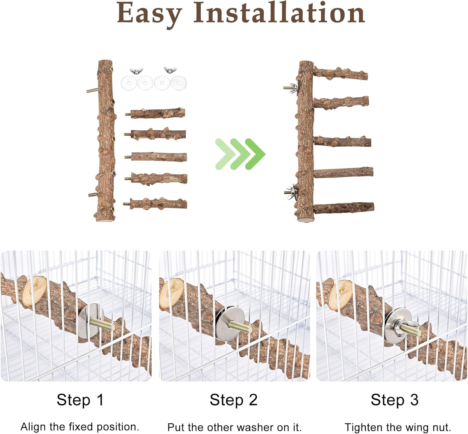 - γEasy Installationγ: The bird perches are suitable for all bird cages. Each bird perch stand toy is equipped with built-in bolt and wing nut, super easy to install and dismantle. Once intalled it will not fall off from the cage, safe for birds to rest or play on.