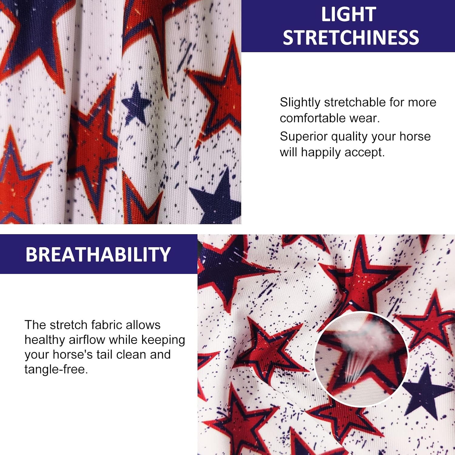 Harrison Howard Stretchy Tail Bag Breathable Horse Tail Guard Slip on Design Protect Horse Tail 2 Strand Closure Straps Keep Tail Clean & Protected 22" L Length Makes Grooming Easy-Dream Star