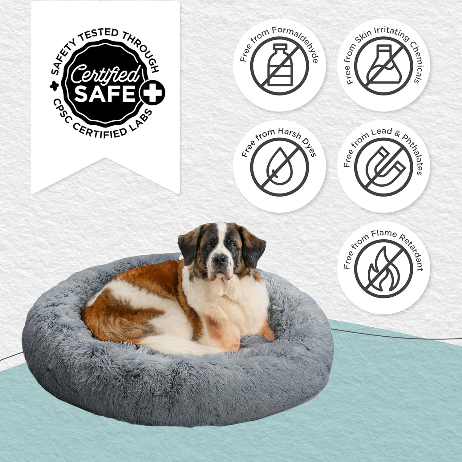 - Calming Dog Bed: 45-inch donut cuddler provides a cozy haven to help soothe anxiety and stress in extra large dogs up to 150 lbs; ideal for breeds such as Bernese Mountain Dog, Saint Bernard, Newfoundland, Bullmastiff, etc