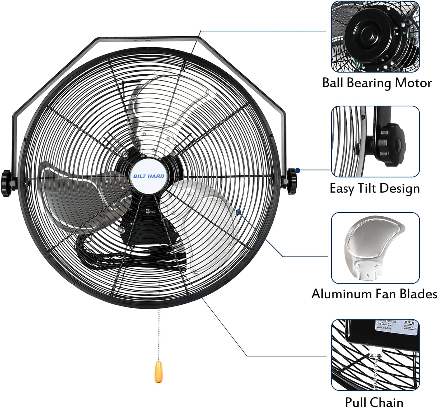 BILT HARD 4600 CFM 20 in. Industrial Wall Mount Fan, 3-Speeds High Velocity Wall Fan with Sealed Motor, Heavy Duty Metal Barn Fans for Garage, Commercial, Greenhouse, Warehouse & Shop Use