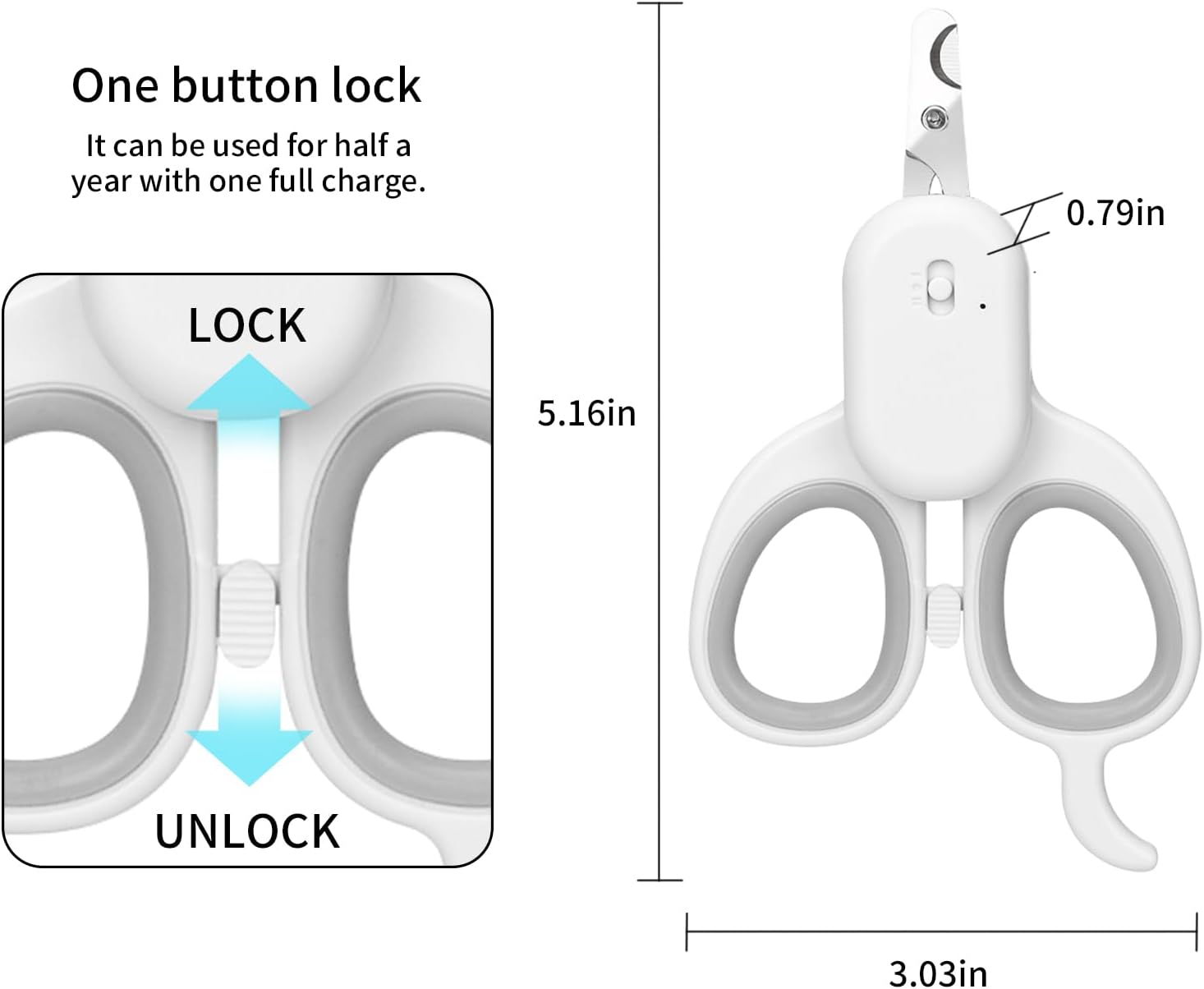 - Reassuring Safety Lock: We have designed safety snaps for pet nail clippers. The safety lock prevents your child from being scratched by the sharp cutting head, you can put it anywhere without worrying about safety