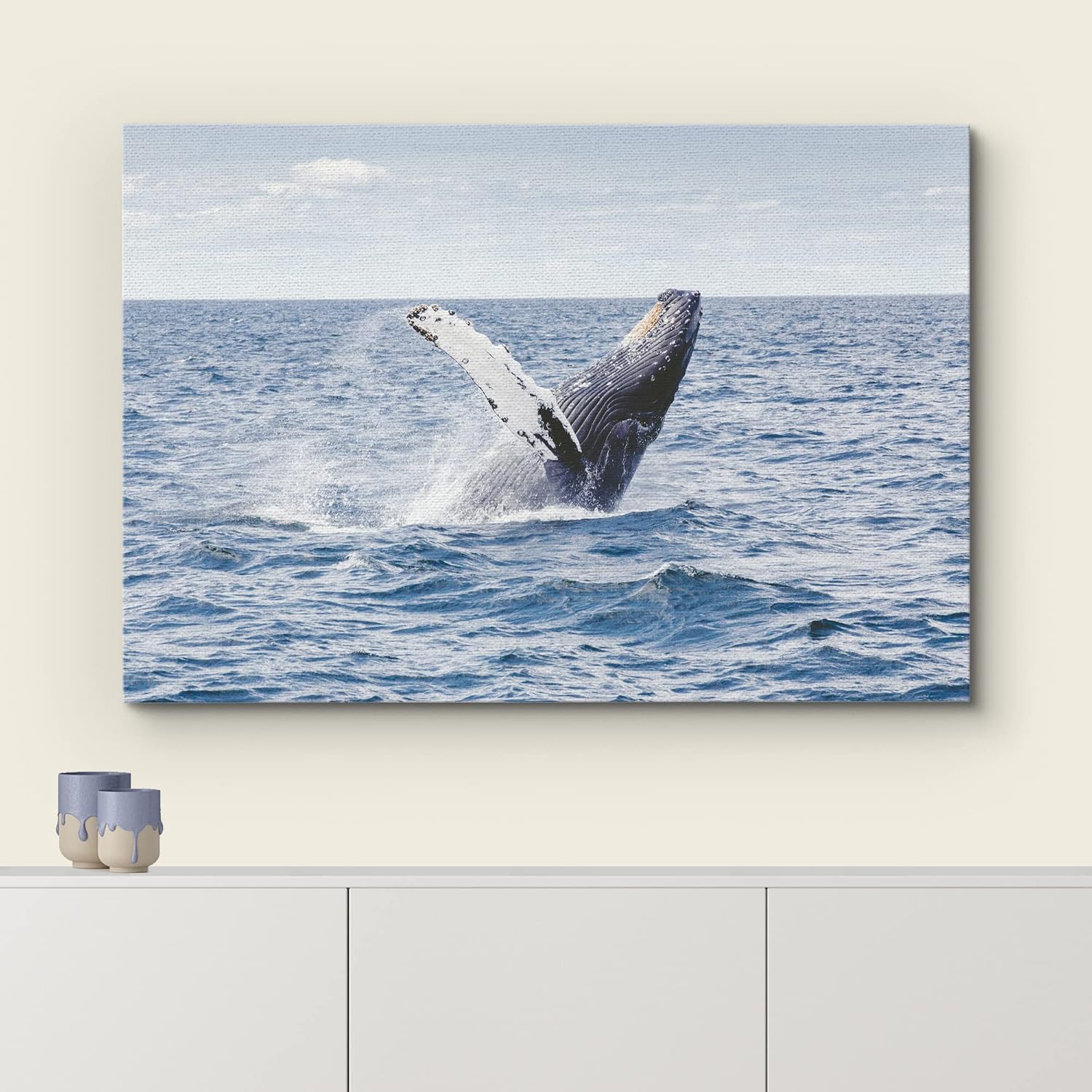 wall26 Canvas Print Wall Art Tropical Ocean Sea Water Horizon Blue Whale Nature Animals Photography Realism Rustic Scenic Landscape Wilderness Colorful for Living Room, Bedroom, Office - 16"x24"