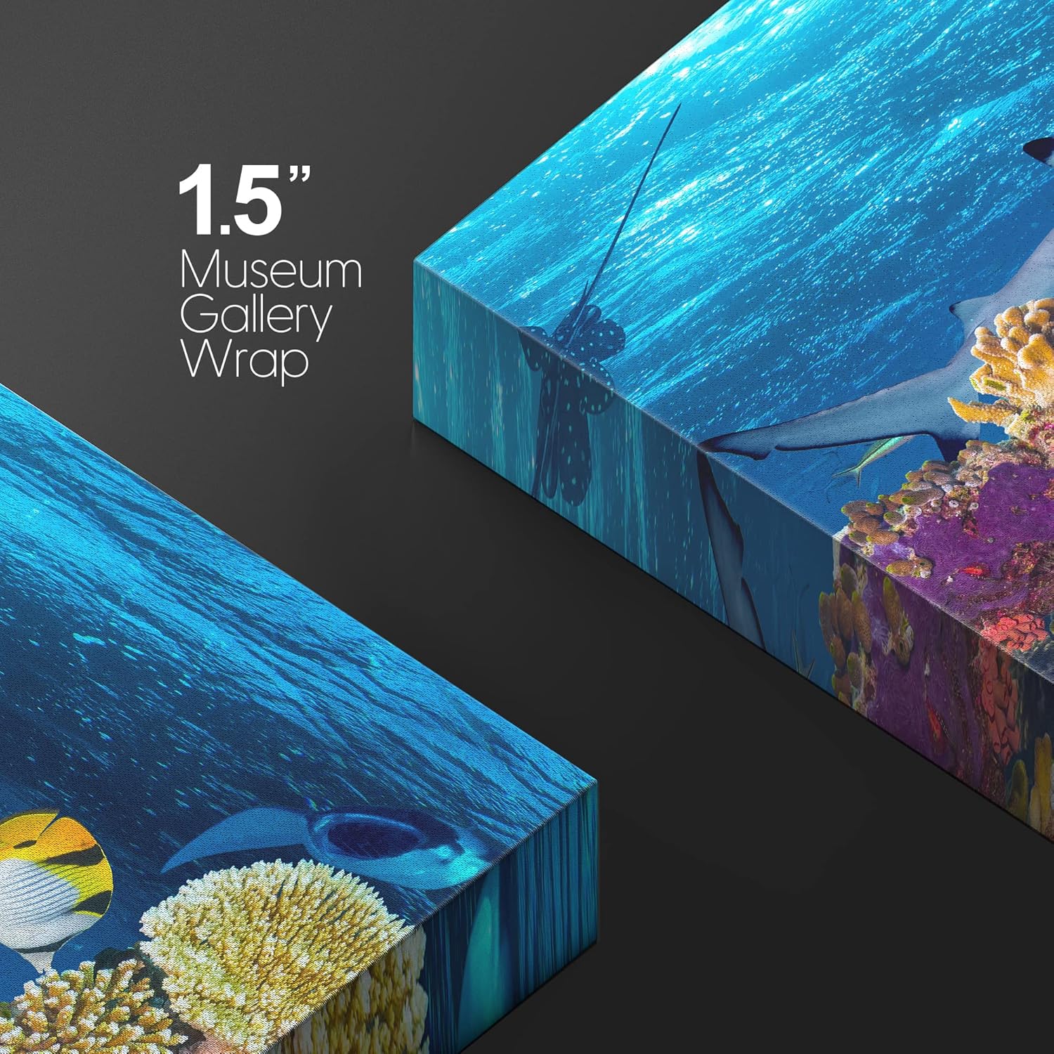 wall26 Canvas Print Wall Art Tropical Island Underwater Turtle Shark Nature Animals Photography Realism Rustic Scenic Landscape Wilderness Earth Colorful for Living Room, Bedroom, Office - 24"x36"