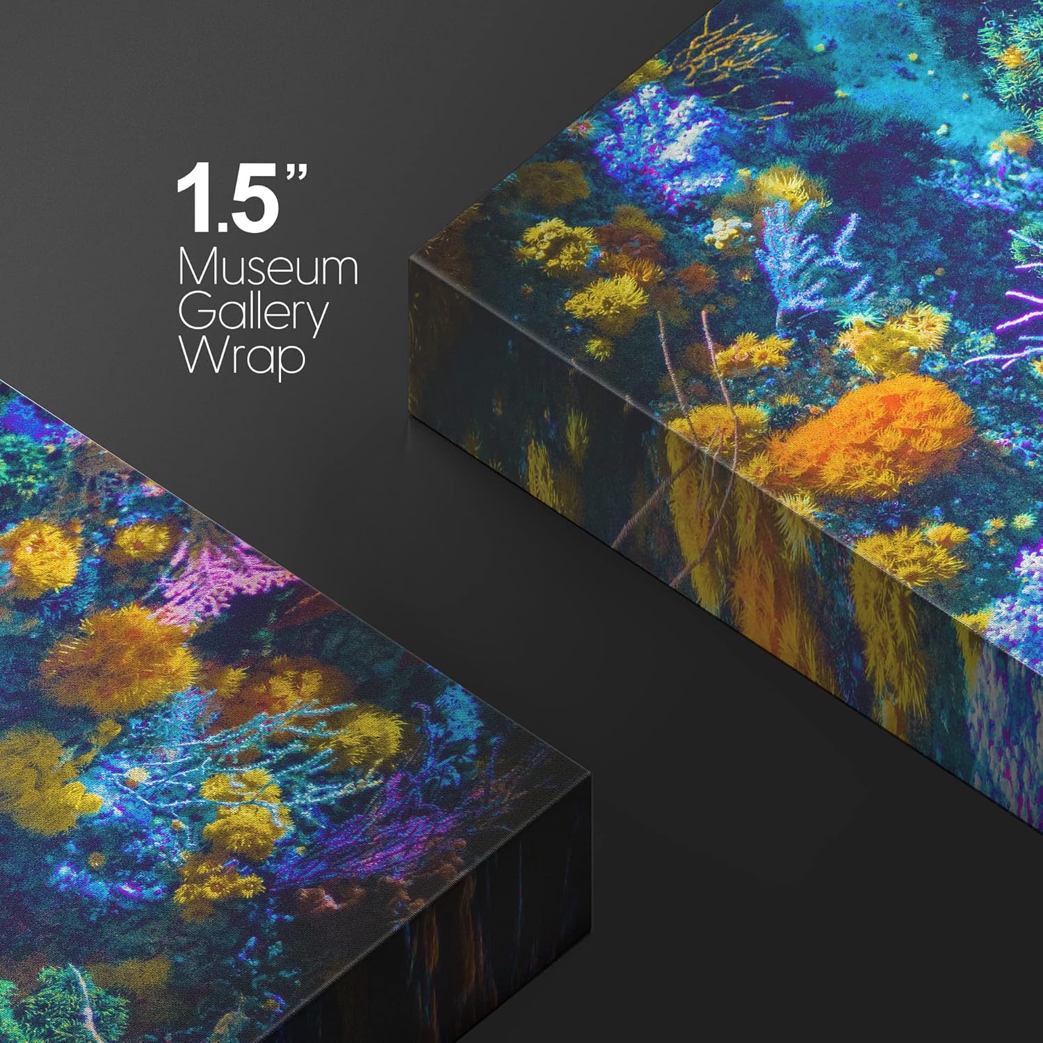 wall26 Canvas Print Wall Art Vibrant Neon Multicolor Anemone Coral Reef Nature Animals Photography Realism Rustic Scenic Landscape Wilderness Earth for Living Room, Bedroom, Office - 16"x24"