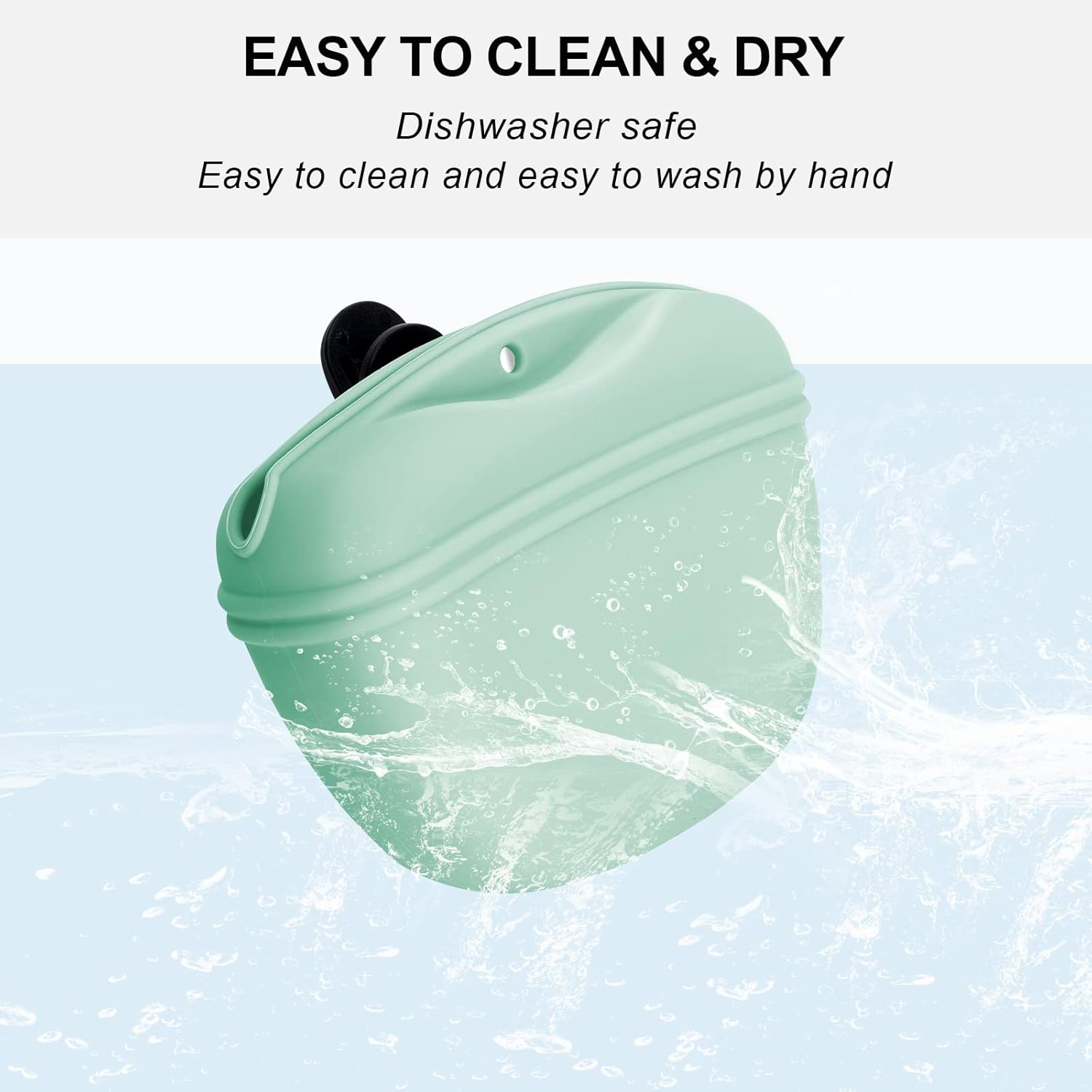 - ๐Silicone Dog Treat Pouch๐ - The silicone dog treat pouch is made of food grade silicone,it can contact dry and wet food directly,safe and healthy. Itโs easy to on and off with one hand, automatic close after feeding.With upgrated clip,It is easy to carry,not easy to fall off.Dish washer safe and easy to clean,The large opening design and soft silicone material make the pet pouch easy to reverse to clean the inner easily and thoroughly.