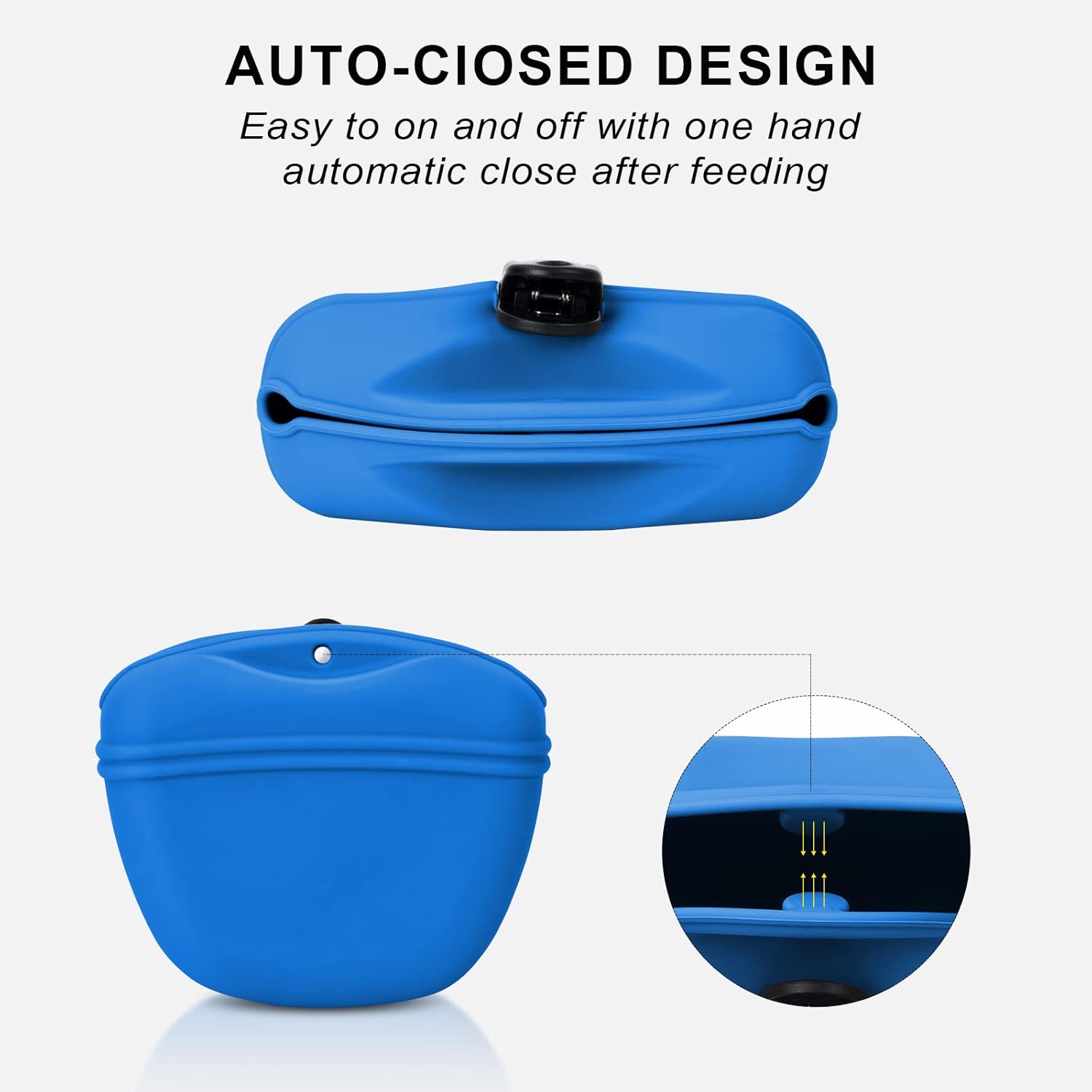 - ๐Silicone Dog Treat Pouch๐ - The silicone dog treat pouch is made of food grade silicone,it can contact dry and wet food directly,safe and healthy. Itโs easy to on and off with one hand, automatic close after feeding.With upgrated clip,It is easy to carry,not easy to fall off.Dish washer safe and easy to clean,The large opening design and soft silicone material make the pet pouch easy to reverse to clean the inner easily and thoroughly.