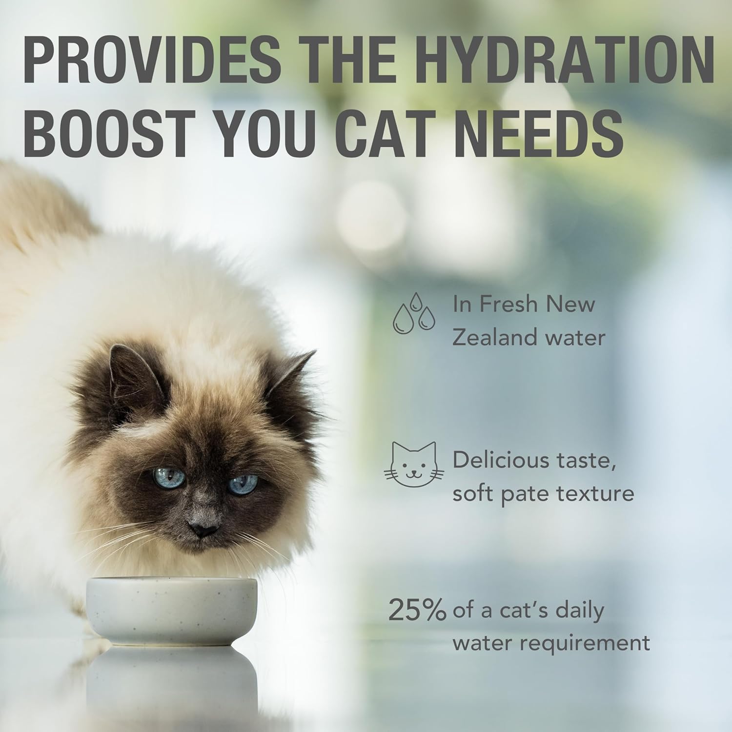 - Enhanced Hydration: Free from binders, gum, or gelling agents, our feasts include fresh New Zealand water for extra hydration. This wet cat food aids in promoting kidney and urinary tract health, ensuring your cat benefits from premium hydration