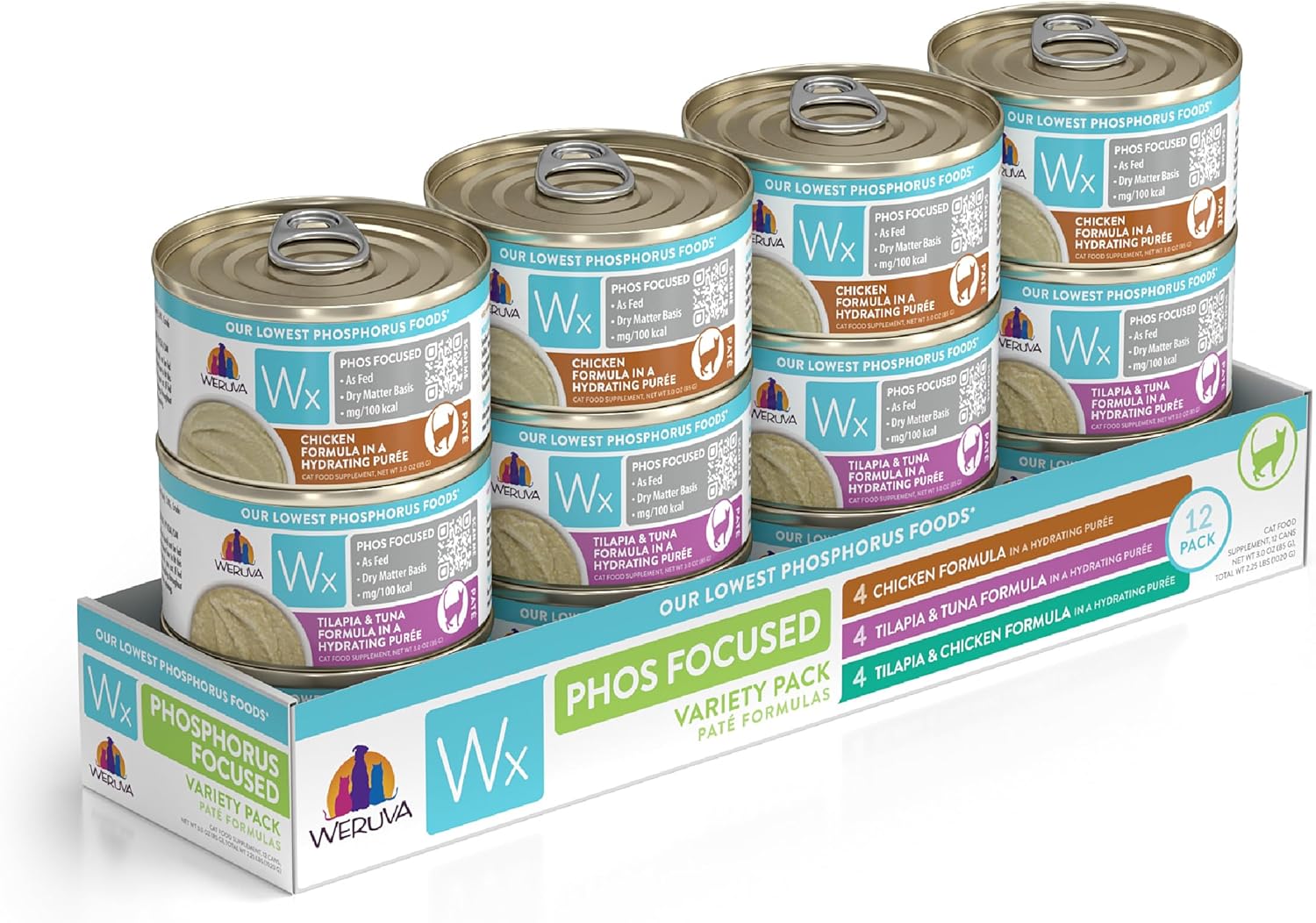 Weruva Wx Phos Focused, Pate Formulas Variety Pack, 3oz Can (Pack of 12)
