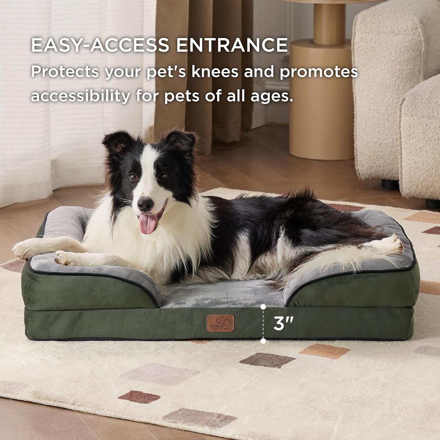 Bedsure Orthopedic Dog Beds Large Sized Dog - Washable Large Dog Cat Bed Waterproof, Comfort Dogs Couch Sofa with Washable Removable Cover, Pet Bed with Nonskid Bottom, Boreal Canopy Green, 35"
