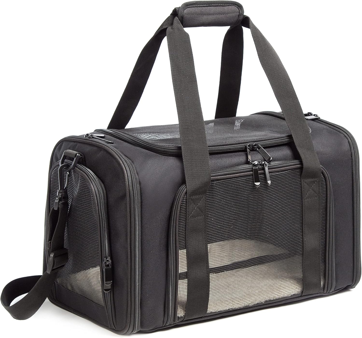 Cat Carrier Dog Carrier Pet Carrier Cat Bags for Small Medium Cats Dogs Puppies of 15 Lbs,of Airline Approved Small Dog Bag Soft Sided,Collapsible Travel Puppy Carrier(Large, Black)