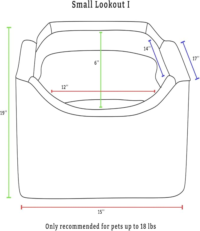 - This dog booster car seat for dogs small 5-15 lbs raises your pup 6β to allow for viewing out of the window. The removable pillow can add additional height if necessary. The enveloping microsuede interior is 12β x 14β and boasts 6β tall sidewalls to secure small breed dogs under 10β in length (like pomeranians, chihuahuas, and yorkies) within the dog car seat. The Lookout dog car seat measures 17β³H x 15β³W x 19β³L and is an ideal back seat or front seat dog car seat, fitting inside a single seat.