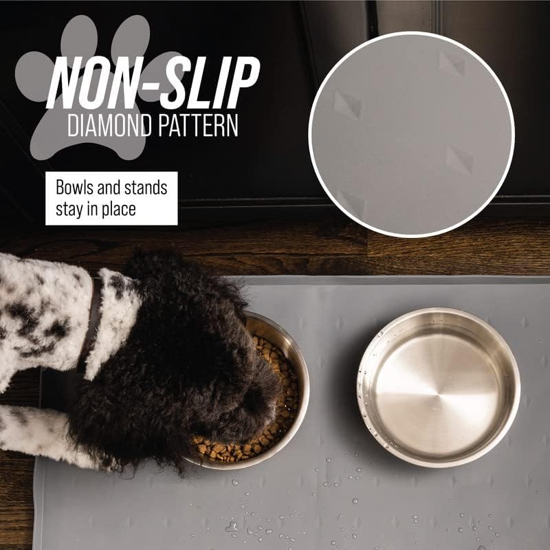 - Non-Slip Diamond Pattern: Our placemats feature a non-spill silicone rubber surface with a diamond pattern to prevent bowls and feeders from sliding around on your floor while pets are eating.