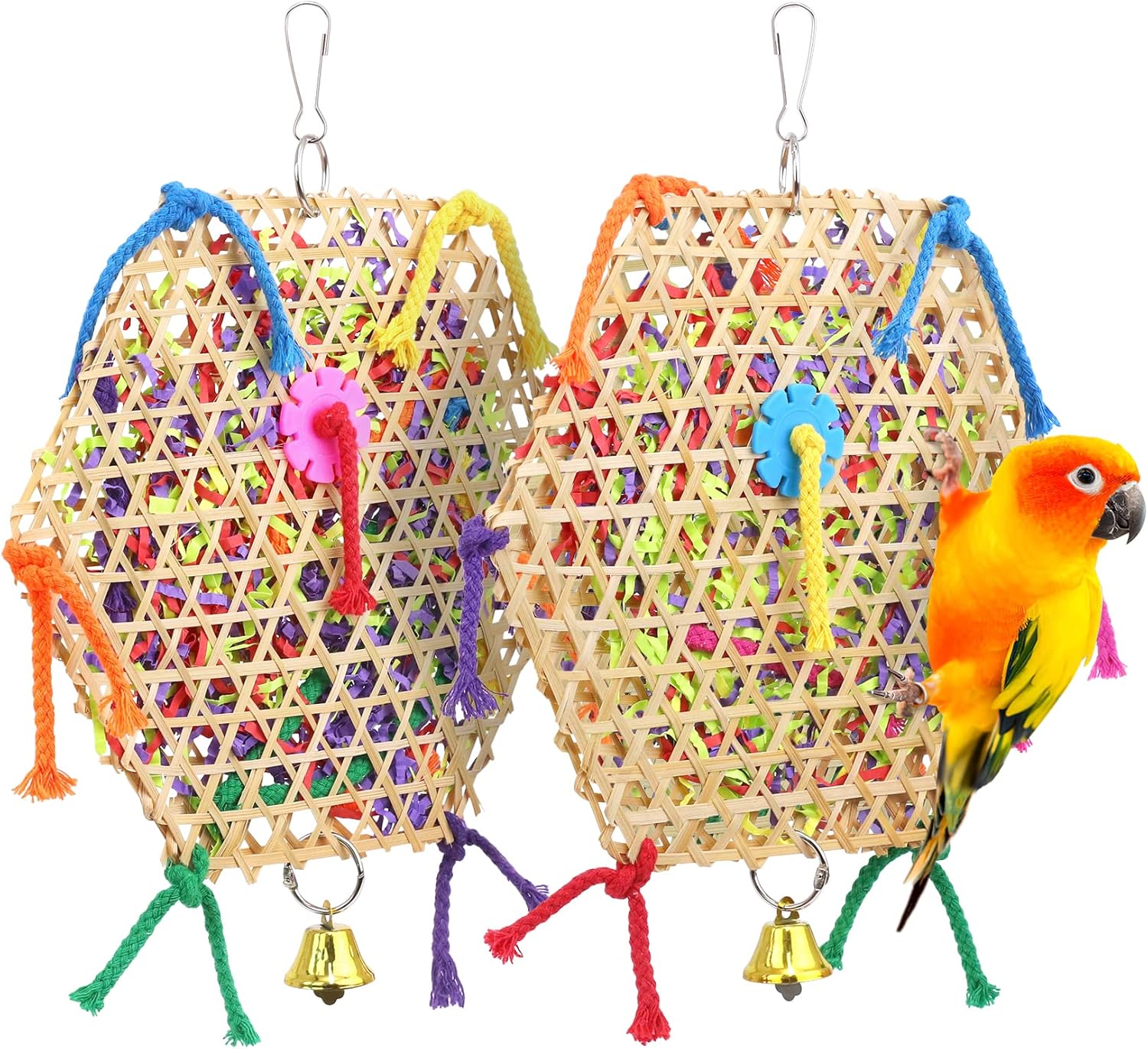 - 【Great Gifts for Your Bird】Parrot chewing toy with colorful crinkly papers, which will easily catch bird's eyes immediately and parrots will play with these toys for a long time daily. And they love to play with it, helping to avoid parrot boredom, depression, aggression and destruction sexuality
