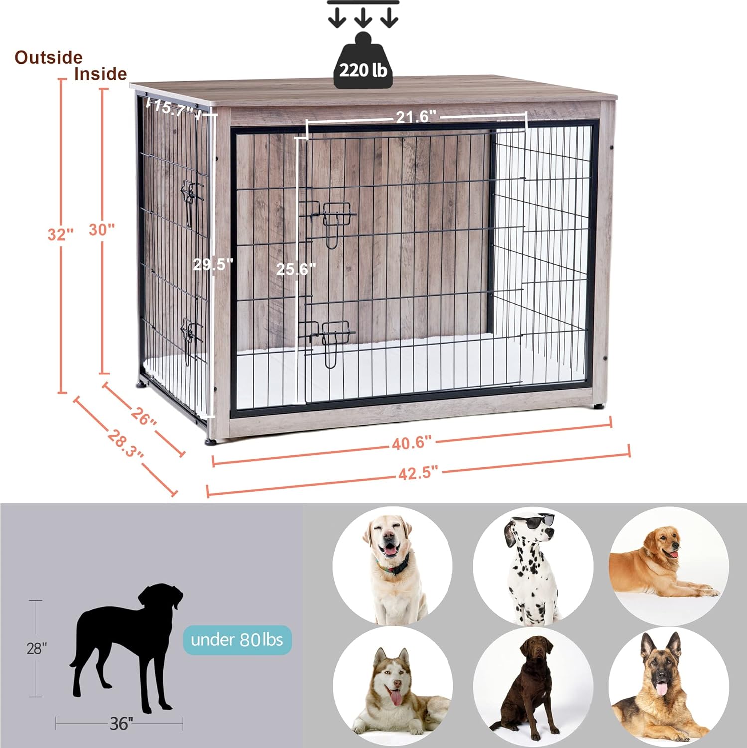- 【Dog crate with Cushion】 Matching cushion in the crate take your dog a warm and more comfortable sleep, and also we use the wooden plate at the bottom, no pet foot jamming, more safety.