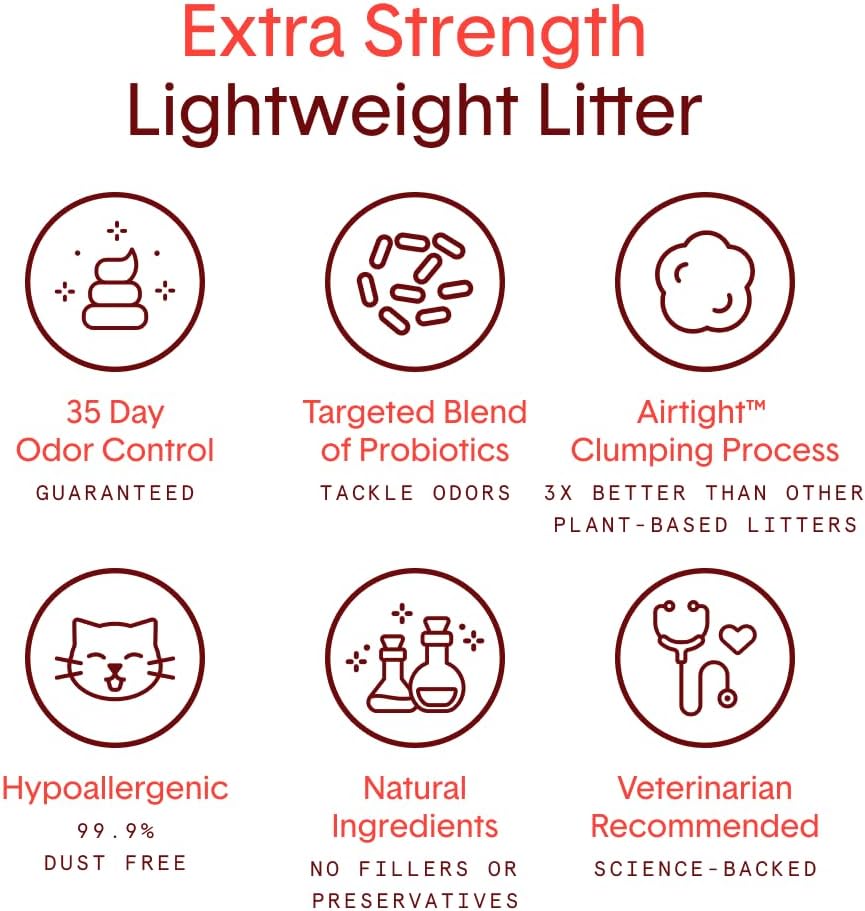 - GUARANTEED ODOR CONTROL: 35-day odor control guarantee (2x longer than leading competitors), Boxie Extra Strength stops odors before they start using a proprietary blend of probiotics. Eliminates ammonia odor.