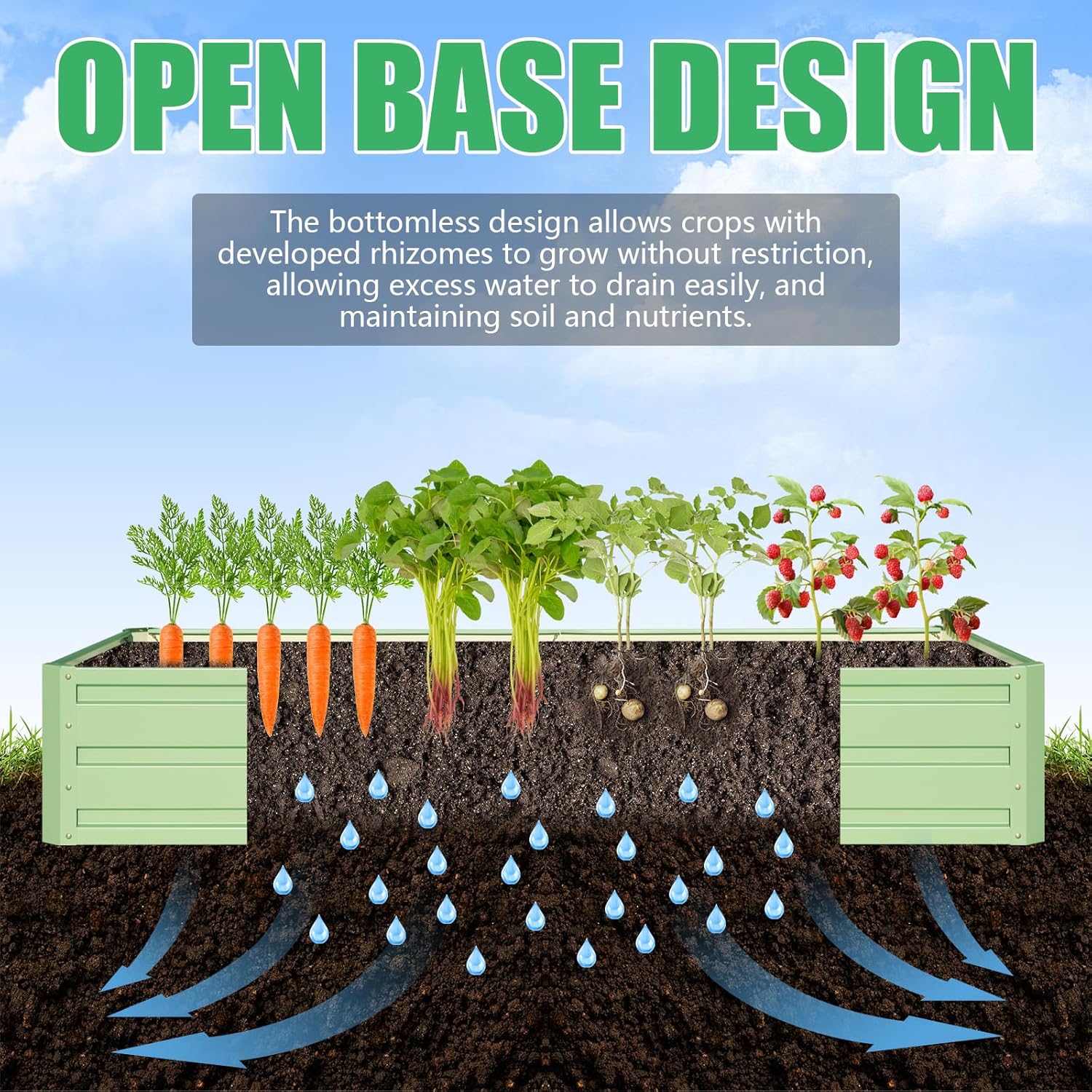 - Safe Design: Bottomless planter allows plants to grow without touching metal, and provides good drainage to keep weeds away.