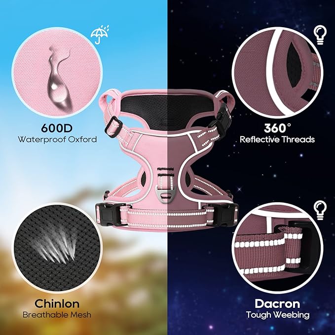Timos Dog Harness, 3 Snap Buckles No-Pull Soft Padded Dog Vest with 2 Metal Leash Clips, Adjustable Reflective No Choke Pet Harness with Easy Control Handle for Medium Dogs,Pale Pink,M