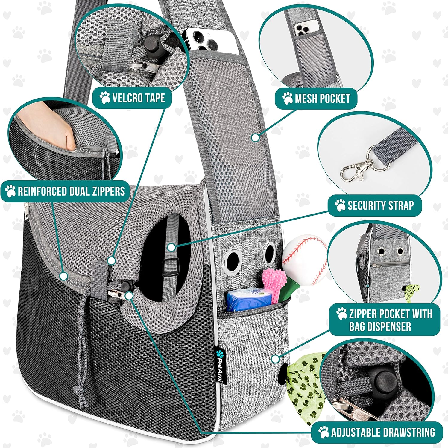 PetAmi Small Dog Sling Carrier, Soft-Sided Crossbody Puppy Carrying Purse Bag, Adjustable Sling Pet Pouch to Wear Medium Dog Cat Travel, Dog Bag for Traveling, Poop Bag Dispenser, Max 10 lbs, Gray