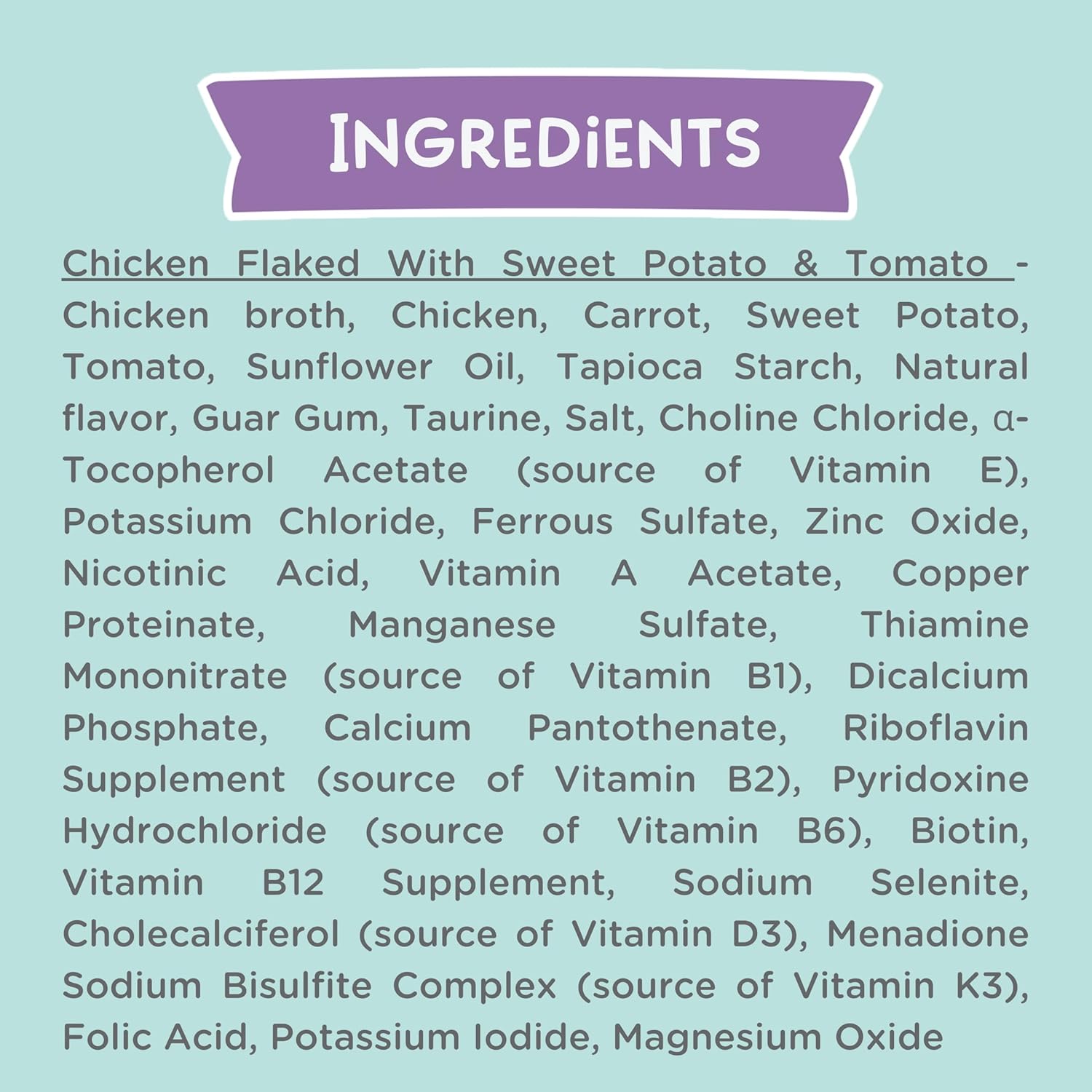 LOVE, NALA - Natural Adult Cat Wet Food - FLAKED Chicken, Sweet Potato, Tomato in Broth - Grain Free, Non-GMO, Digestive Fiber, Vitamins, Minerals - 12 Pack 2.4 lbs.