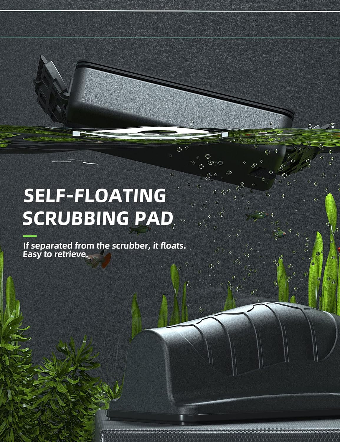 - Simply move the no-scratch, felt-lined handle and inside your aquarium, the scrubber follows, cleaning as it goes