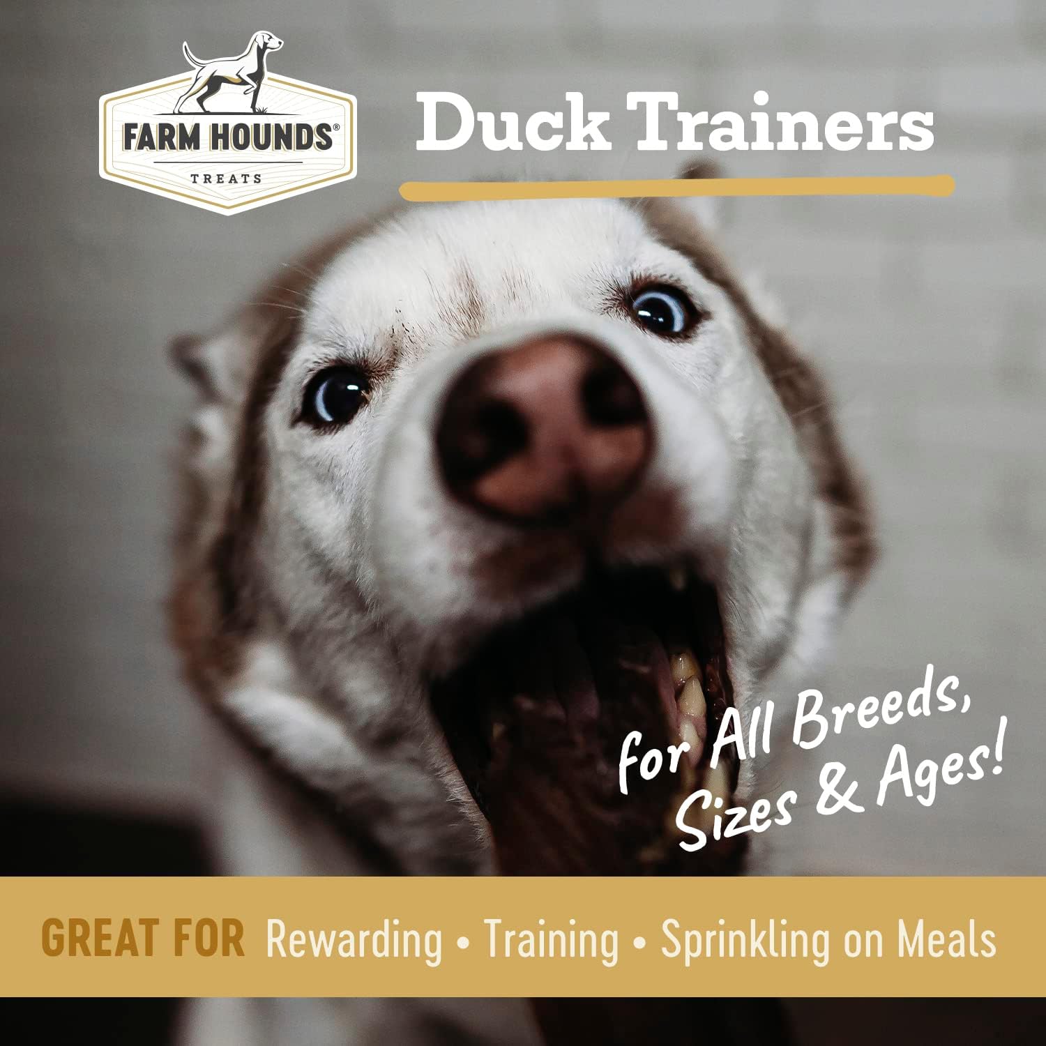 - DUCK TRAINERS - Our Duck Trainers are humanely-raised easy-break, bite-sized duck jerky treats for dogs that all breeds can consume, all sizes and all ages. Use them as dog training treats, rewards, or simply as snacks for your furry best friends. These duck strip bites are available in a pack of two, each in a 4.5 ounce package.