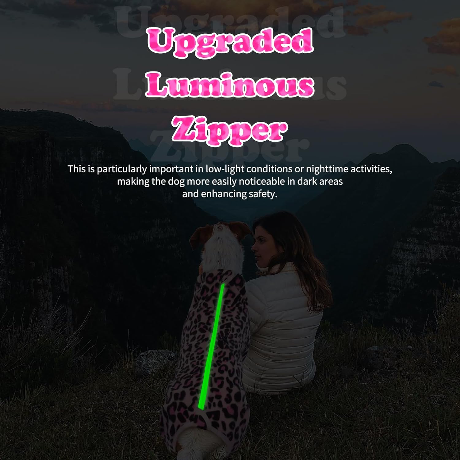 ROZKITCH Dog Fleece PJS with Sleeves, Pet Windproof Warm Cold Weather Jacket Vest with Luminous Zipper, Jumpsuit Apparel Outfit Clothes for Small Medium Large Dog L-Pink S