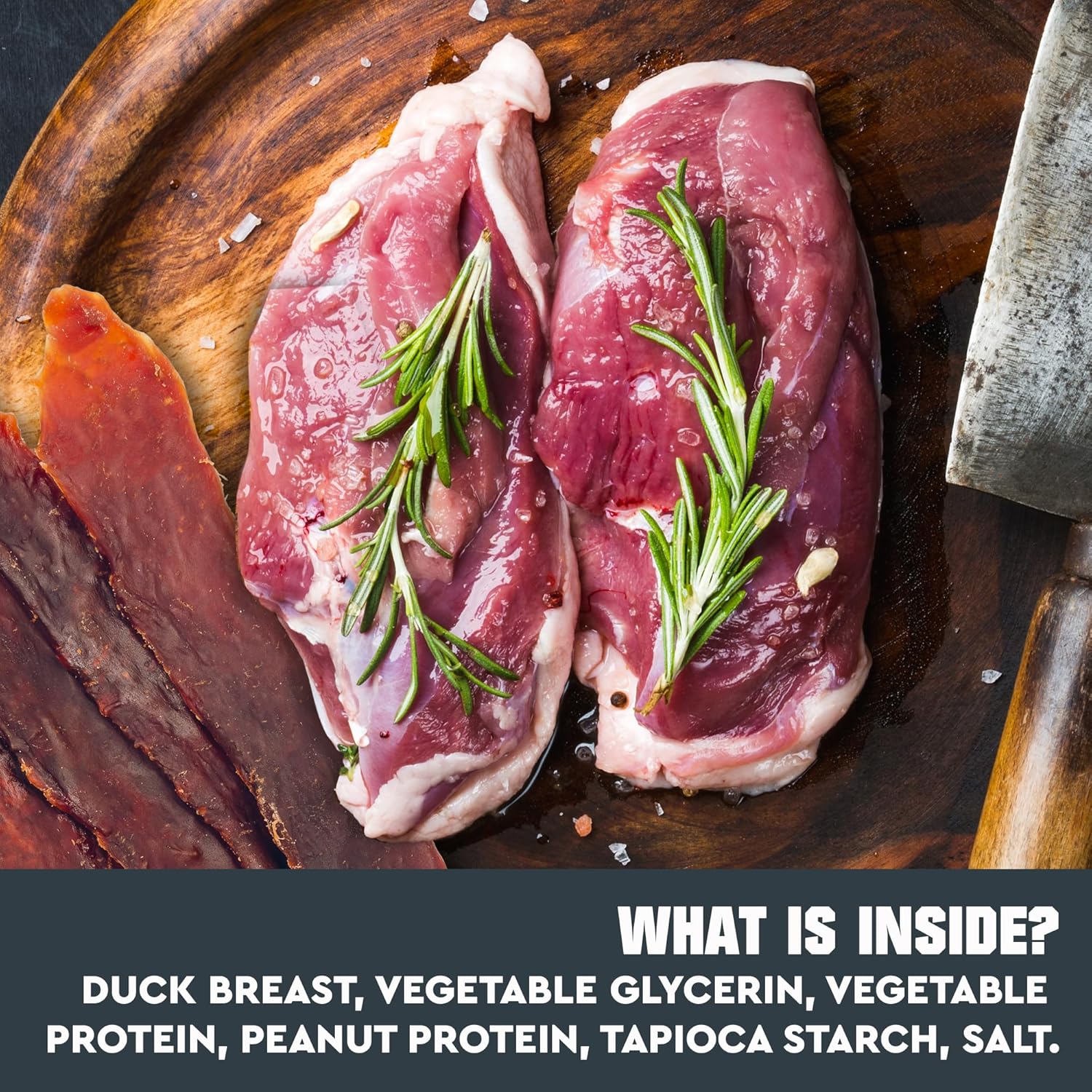 - OUR DUCK JERKY TREATS MADE OF 100% MEAT: You need to let your dog enjoy high-quality natural and healthy food. It is right to choose our product. Dog chewies are perfect for training, these top jerky will last a long time and can especially promote dogs' teeth healthy. Have less plaque and tartar. Keeps dogs' jaws strong and breath fresher.