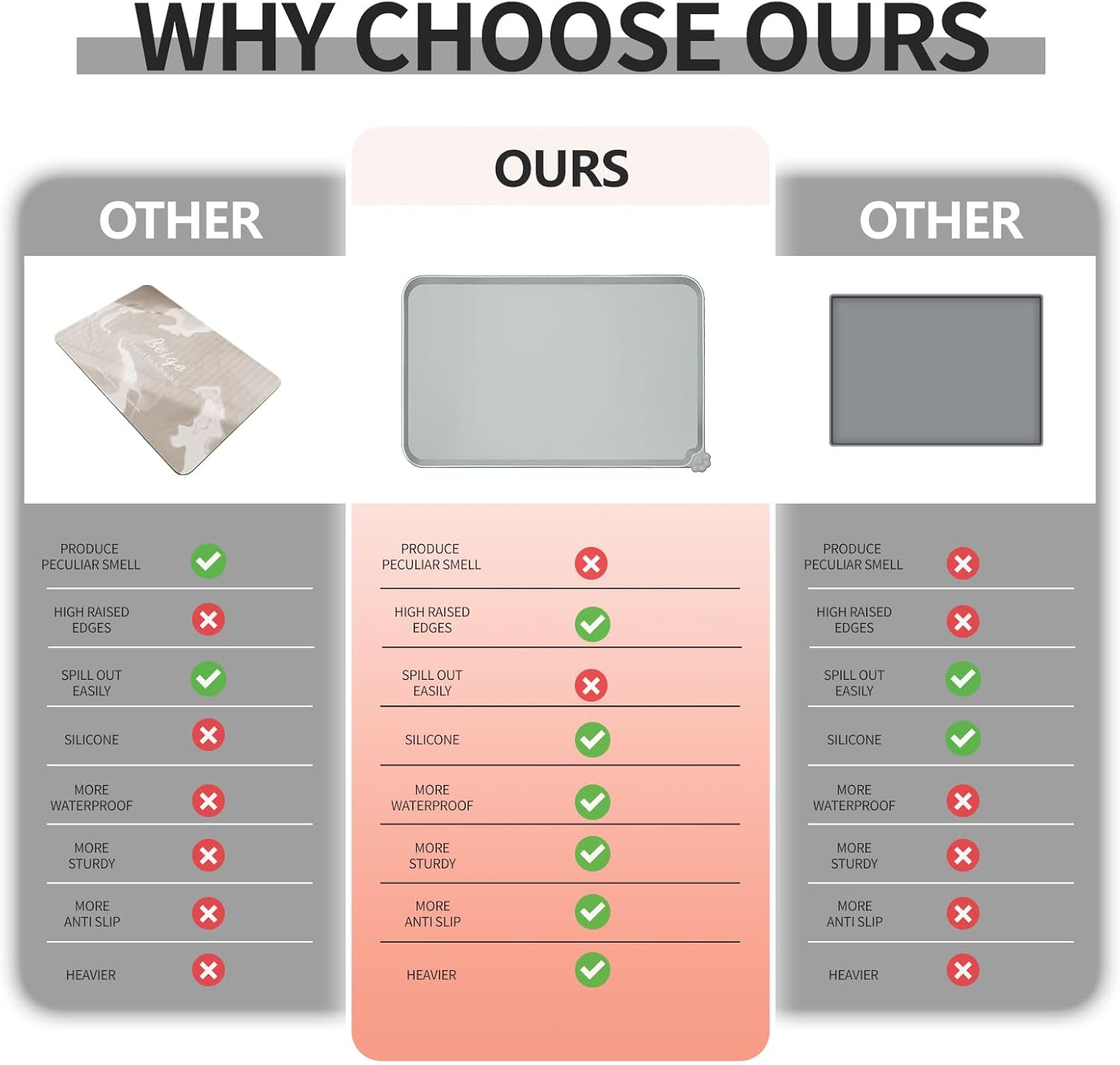 • Anti-slip design: our non-slip pet feeding mat ensures stability for your pet's bowl, preventing any water stains or spills on the floor. Enjoy peace of mind when feeding your pet, knowing that their food stays in place