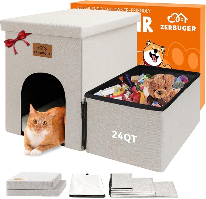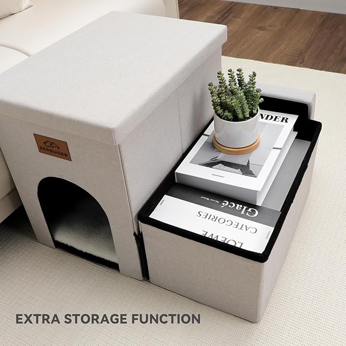 - 3-IN-1 DOG STAIRS AND CONDO: Zerbuger pet stairs not only provide a stable and cozy place for your pet to rest, but also serve as a convenient 24QT large storage area for your pet's clothes, toys, or any other supplies. Our pet steps are covered with removable lids, Every steps are designed as storage boxes.