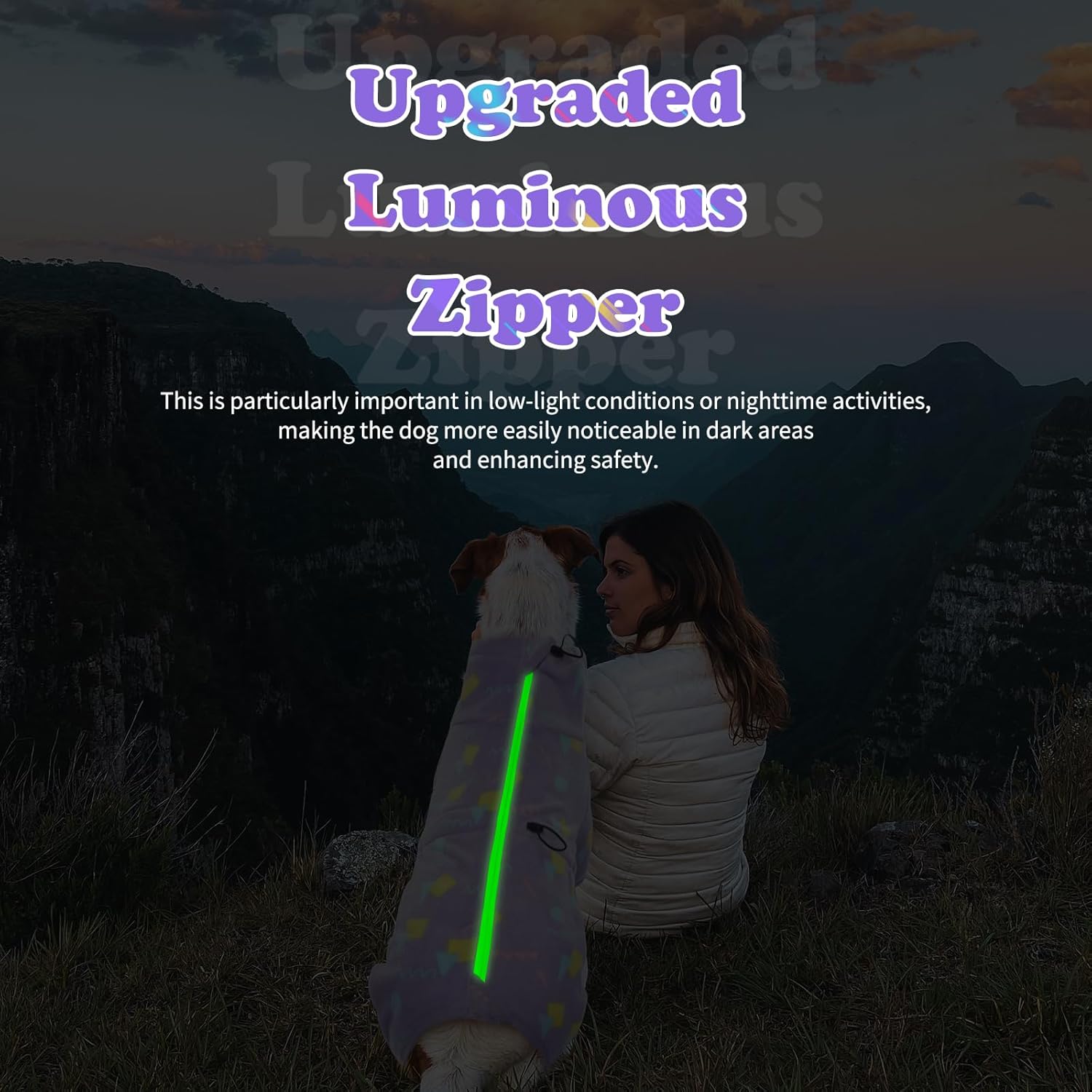 ROZKITCH Dog Jacket with Sleeves, Pet Windproof Warm Cold Weather Jacket Vest with Luminous Zipper, Jumpsuit Apparel Outfit Clothes for Small Medium Large Dog Geometry XS