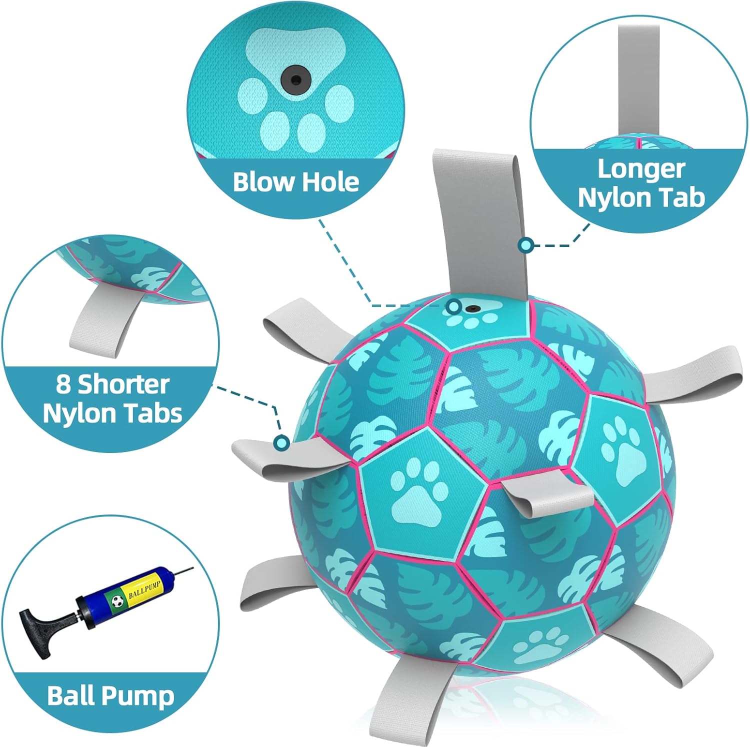 - QDAN Dog Soccer Ball Best Git For Your Dog - Send your dog a bithday gift. House and Outdoor Dog Toyscan be played in the llving room,pool.lake and beach,because it ls also Water Toys Bal,no water absorption.noseepage,no deformation,lightweight,easy to float in water. Dog Soccer Ball with Grab straps are great for dog catching