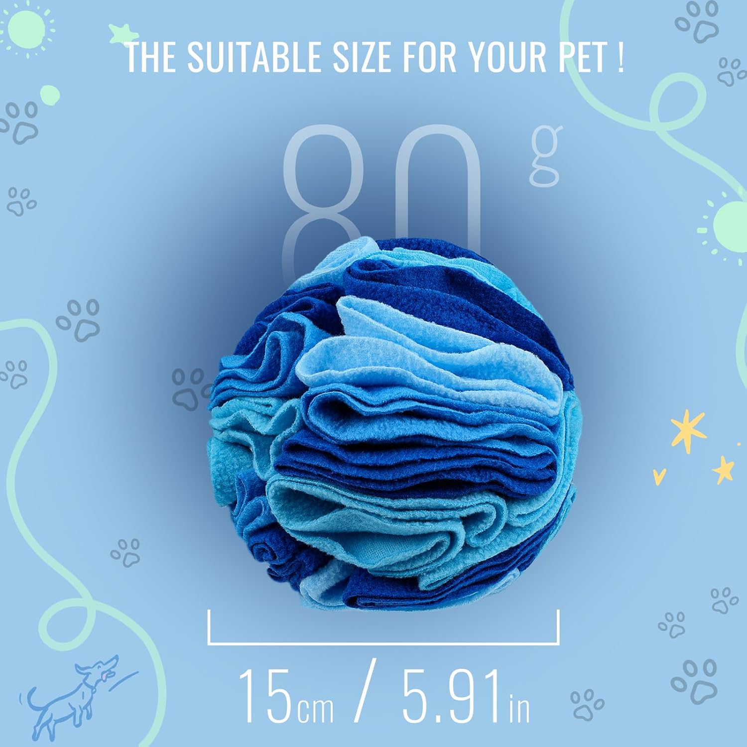Pet Snuffle Ball, Puzzle Sniffing Interactive Dog Ball for Blind Dogs Training Stress Relief Dog Enrichment Toys Treat Machine Washable (15cm, Ocean Blue)