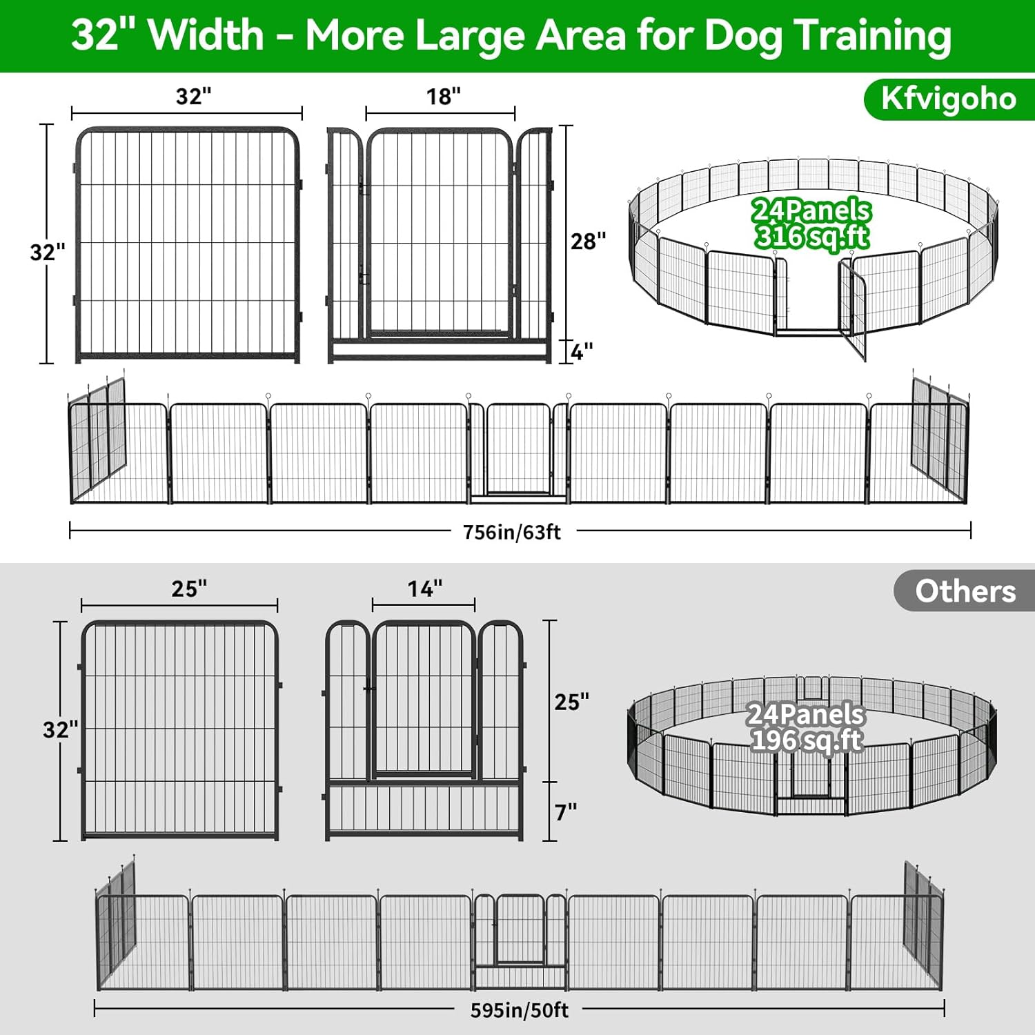Dog Playpen Outdoor Extra Wide 24 Panels Heavy Duty Dog Fence 32" Height Anti-Rust with Doors Portable for RV Camping Yard, Total 63FT, 316 Sq.ft, Snowy Black