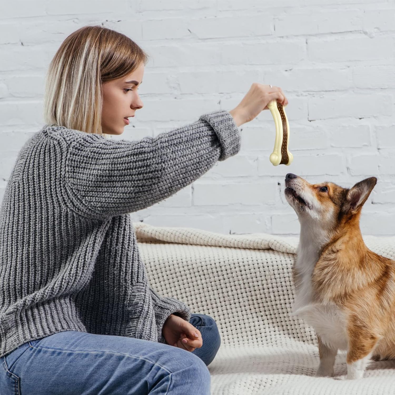 - Bone Chew Toy: the toys for aggressive chewers are designed in realistic bone shape, which can easily catch your dog's attention, reduce their anxiety and boredom; Interesting and curved design makes the toys easy for dogs to chew; These tough dog bones are beef flavoring, and you can also put pumpkin puree(not included) on the toys to attract your dogs