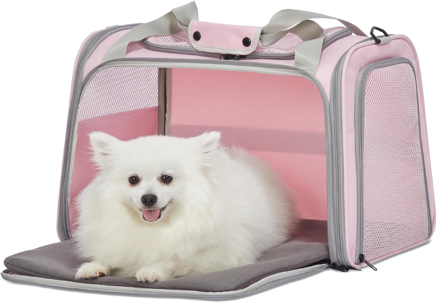 PETSFIT Cat Carrier for Large Cats, Dog Carriers for Small Dogs Under 25 Lbs, Soft Pet Carrier, Cat Crates for Indoor Cats with Cozy Extendable Mat (Large, Pink)