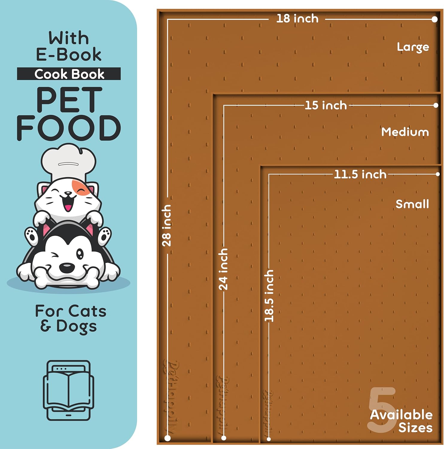 - GET BEST BANG FOR YOUR BUCKS; A (paperless) e-Book on Homemade Dog and Cat Food | Premium-Grade Silicone for Mat | Multiple Sizes available for All Types of Pets. | Elegant Colors to match your DΓ©cor | Thoughtfully Designed Updated Pattern | 0.22 inches Raised Edges and Water-Proof | Multifunctional Mat for Pet Food, Boot Tray, Under Sink Mat Use, Plant Mat