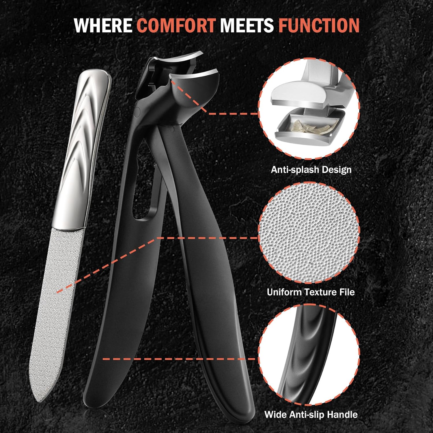 - 🏥WHERE COMFORT MEETS FUNCTION - No more fumbling around with awkward fingernail clippers that slip out of your hand. With our toe seniors nail clipper's comfortable grip, you'll have better control for more efficient nail care. Our nail cutter's ergonomic handle is perfect for all nail types, so you can achieve a professional-looking manicure or pedicure from the comfort of your own home.