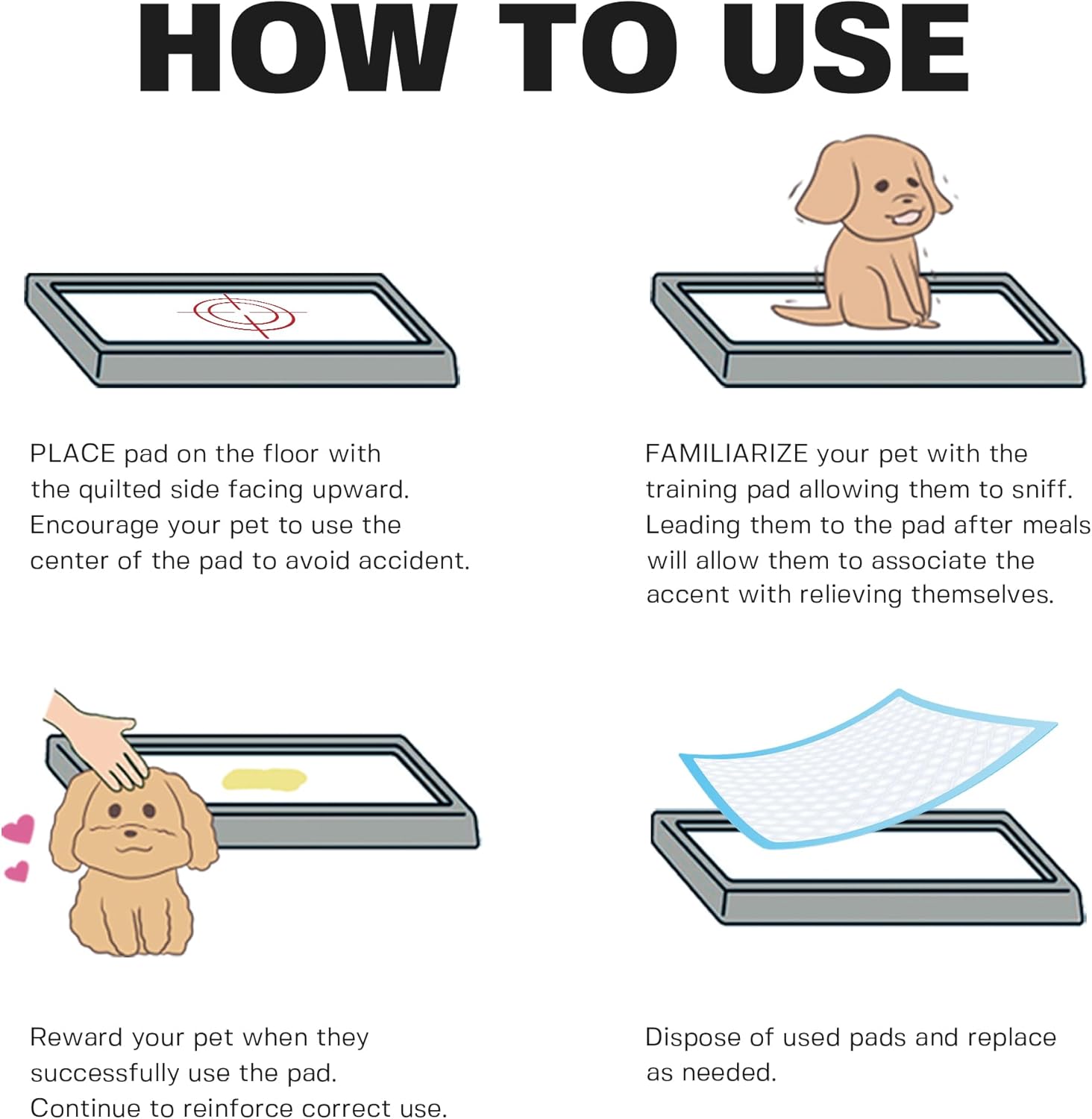- INSTINCTIVE USE FOR FASTER RESULTS: Each potty pads for dogs is enhanced with a built-in attractant that guides your pup to the right spot - great potty pads for learning or reinforcing potty habits.