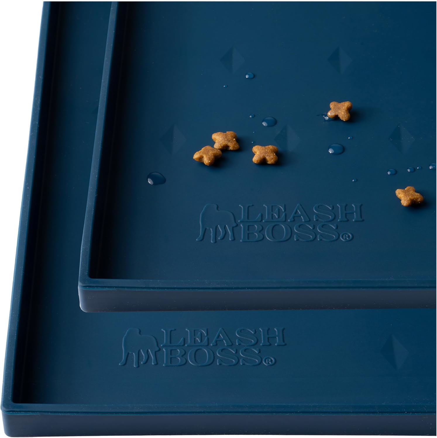 Leash Boss 2 Pack Dog Food Mats for Food and Water Bowls, Thick Waterproof Silicone Pet Feeding Mat for Floors, Extra Tall Raised Edges, Cat and Dog Placemat for Floors, Dishwasher Safe