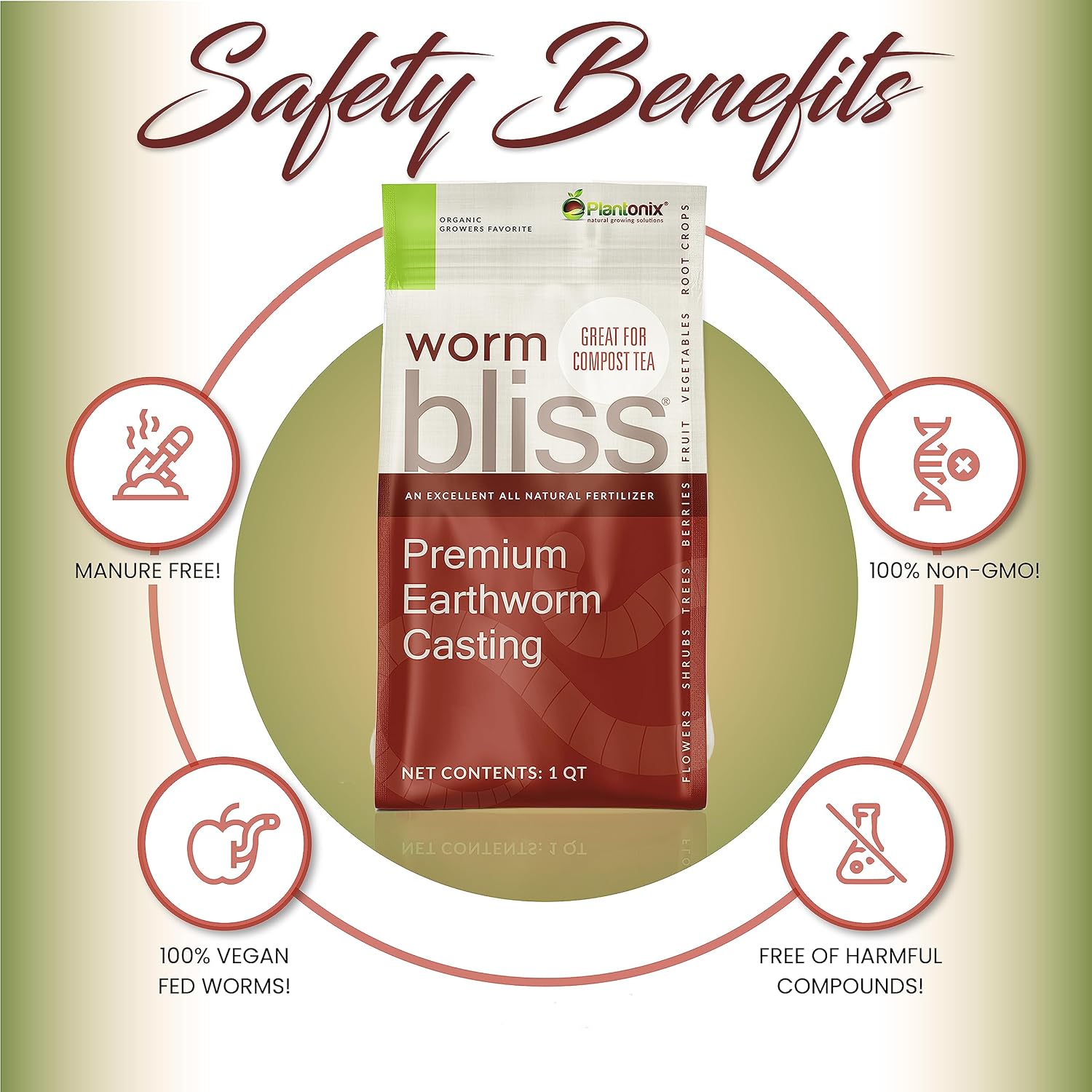 Worm Bliss (8 Qts) - Organic Worm Castings for Plants & Gardening - OMRI-Listed Earthworm Castings for Plants, Vegetables, Flowers, & Potting Soil - Organic Garden Fertilizer Rich in Nutrients