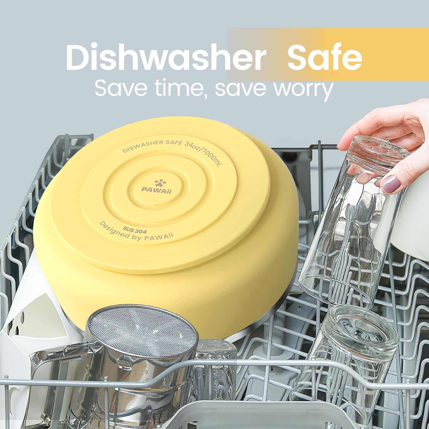 - ๐ ๐๐ซ๐๐๐ณ๐ ๐ญ๐จ ๐๐ฅ๐๐๐ง: You can wash this dog feeder in a dishwasher or manually. Pawaii stainless steel dog bowl repels oil, does not hide dirt, and can be cleaned by simple flushing.