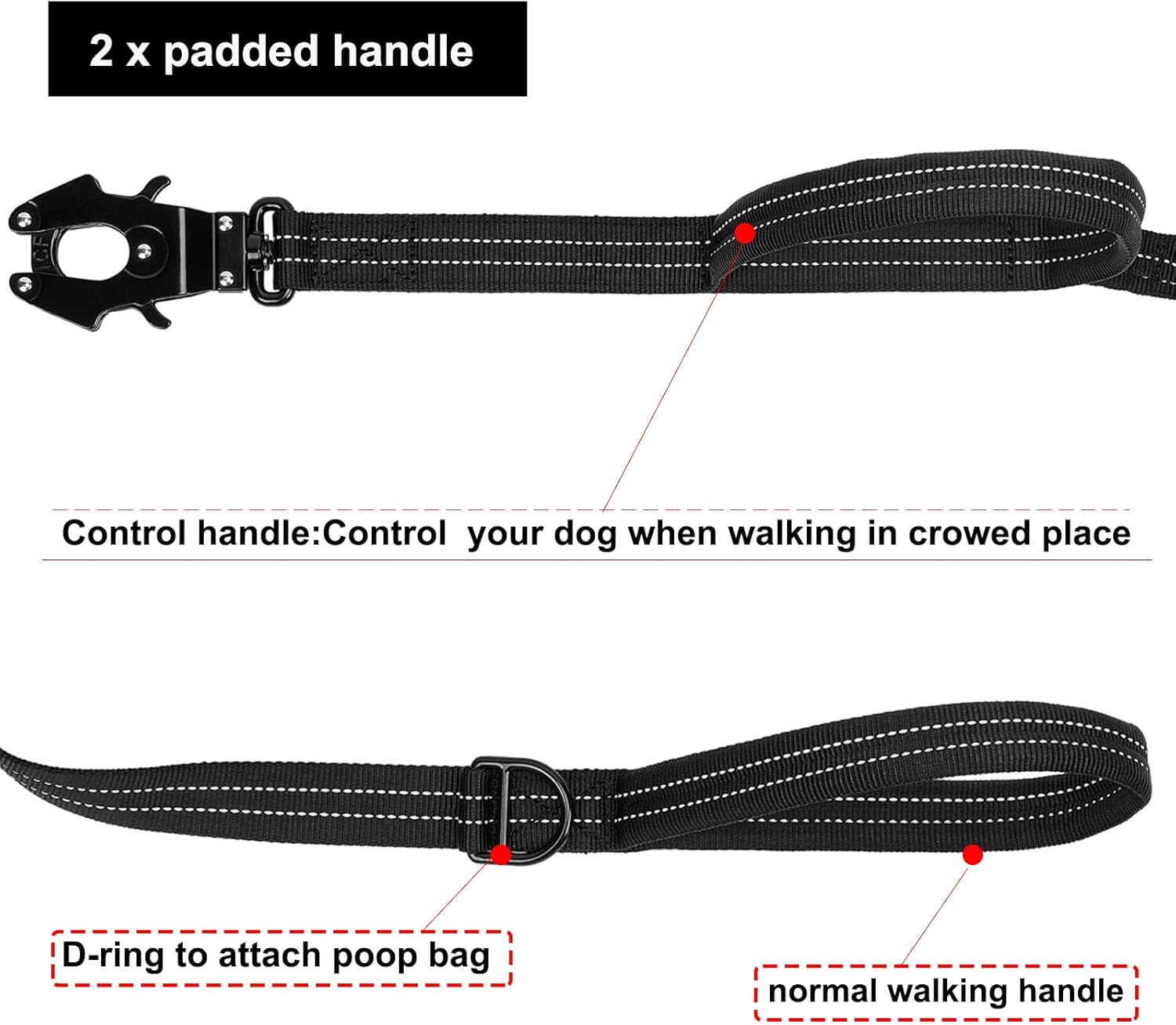 - [ Reflective ]: This dog leash uses reflective nylon webbing, making you and your dog highly visible during nighttime walks, thus enhancing safety.