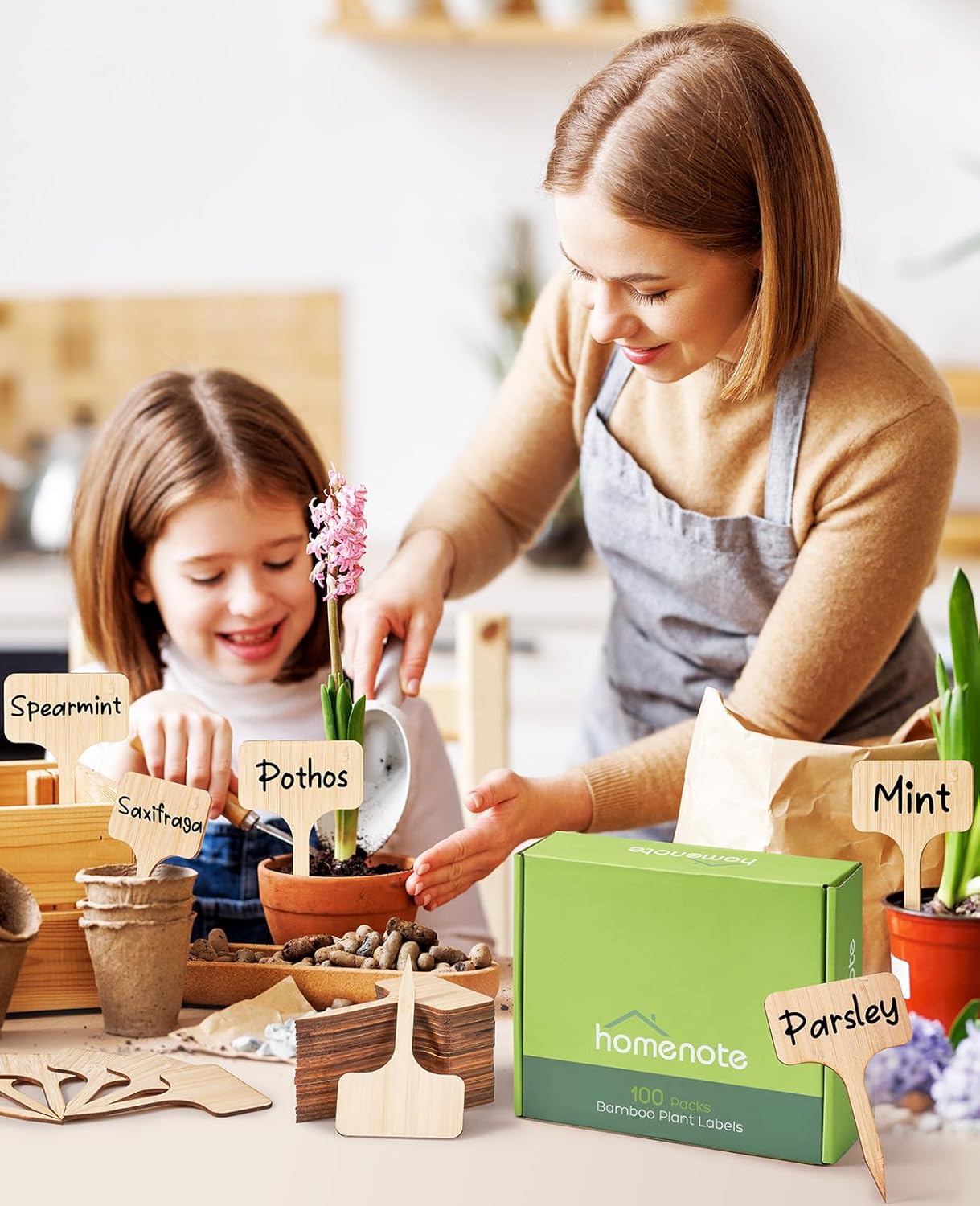 Homenote Bamboo Plant Labels 100Pcs Plant Tags for Seedlings T-Type Tags for Plants Outdoor Garden Markers Vegetable Seedling(2.36 * 4“