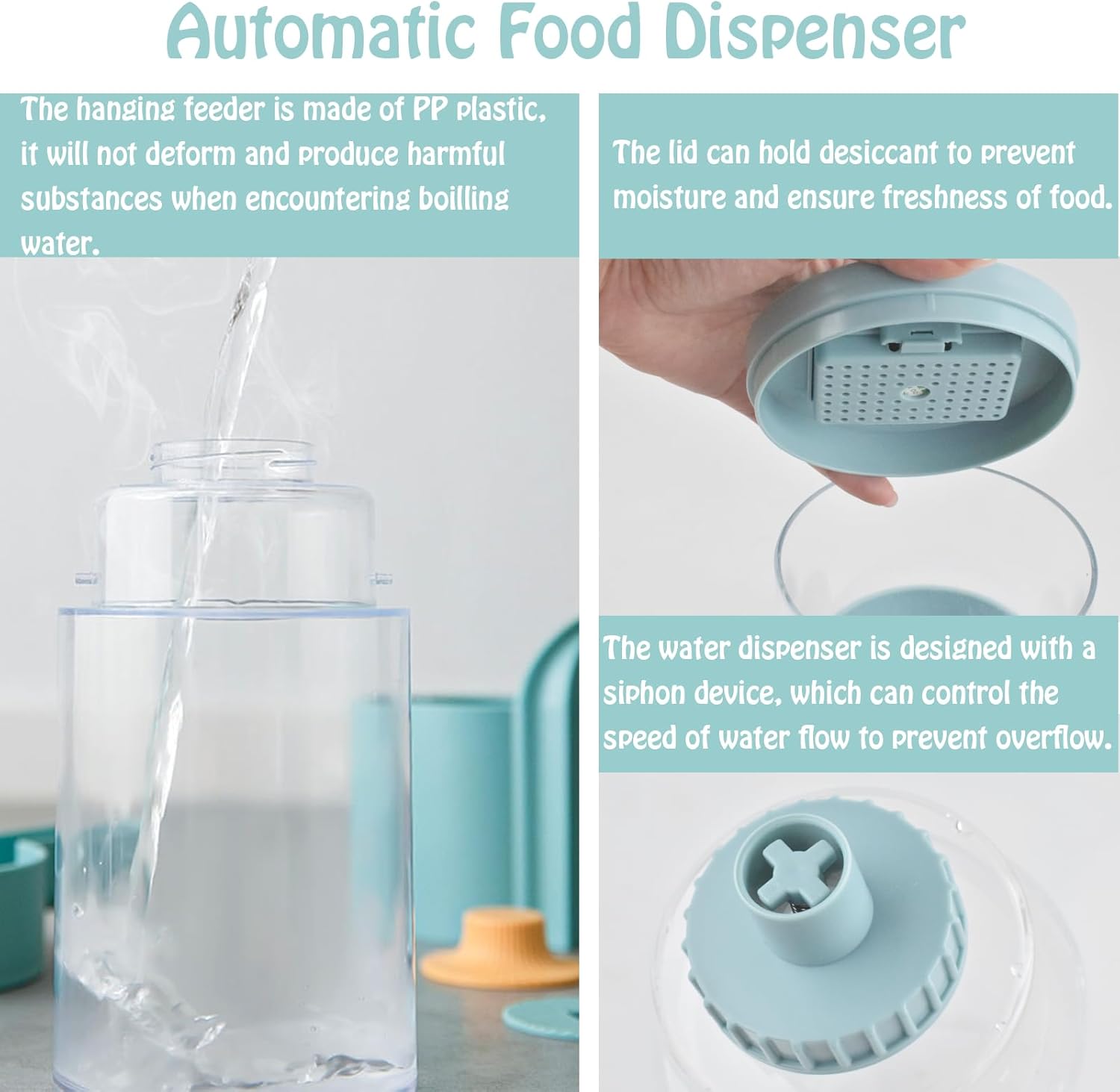 - 【Two Ways To Use】Automatic rabbit feeder can be either placed on the ground or hung on the cage. Knob hanging cage design, just snap the swivel buckle onto the cage and you can hang it securely on the cage. And you can refill foods and water from the outside, very convenience.