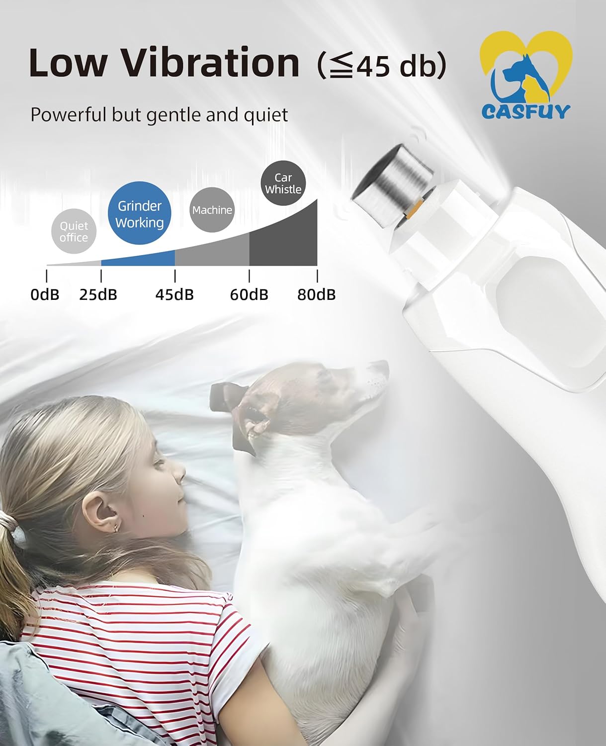• Low Vibration, Gentle and Quiet: Comes with advanced diamond bit, Casfuy quiet nail grinder delivers low vibration, making it a gentle and quiet grooming tool that dogs of all sizes can enjoy, offering your pet a comfortable and relaxing grooming experience.