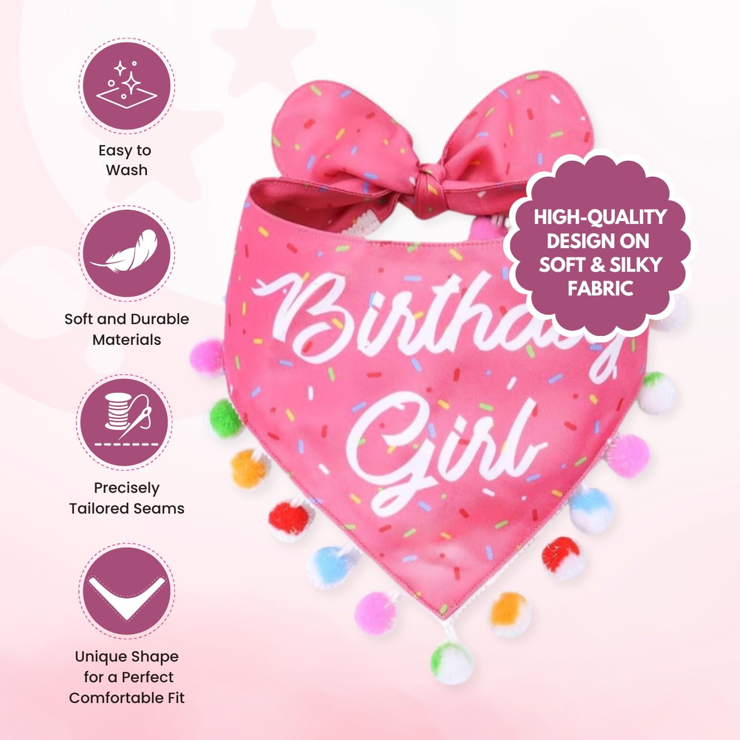 LunaMarie - Luxury Pet Birthday Bandanas -Premium & Silky Poly Fabric | 100% Handmade | Custom Shape Dual Layered (Birthday Girl, Medium)