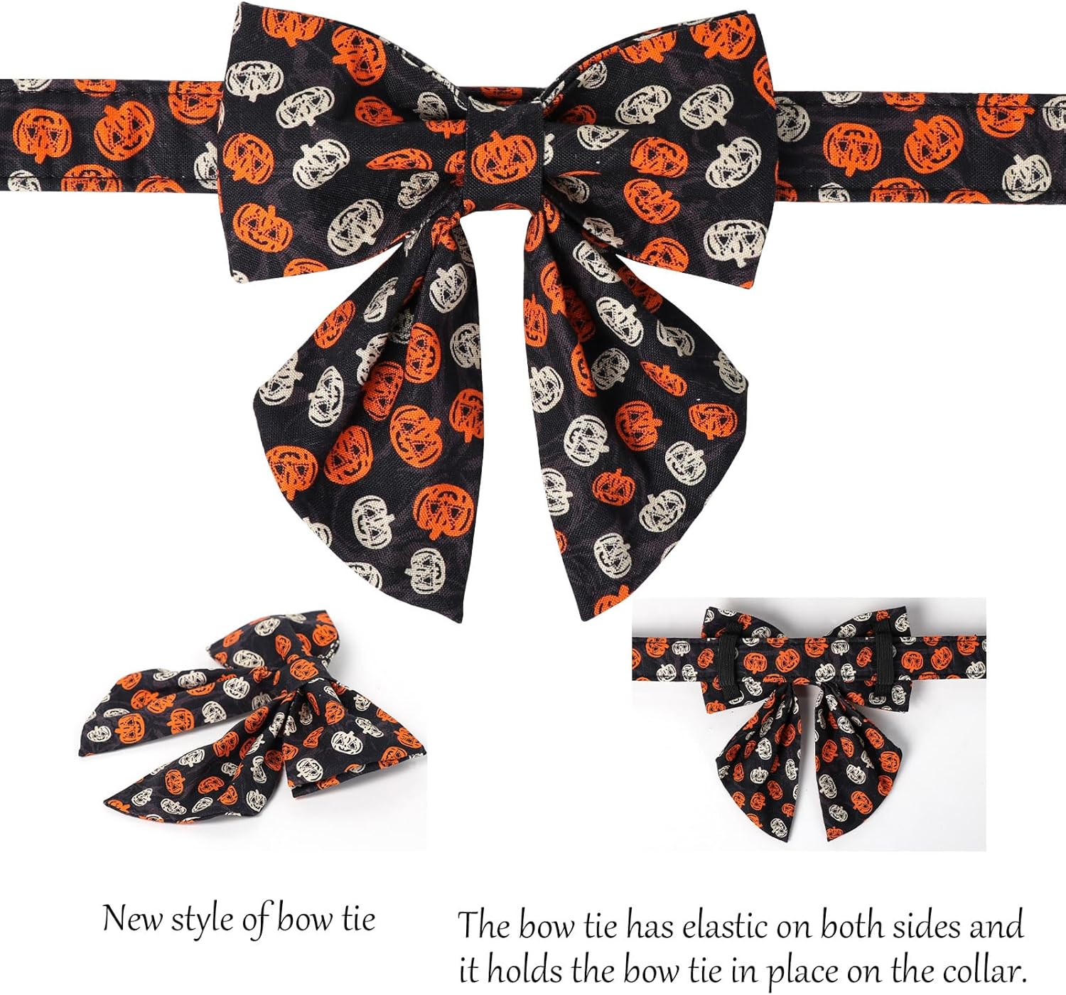 Lionet Paws Halloween Dog Collar with Bowtie - Cute Cotton Adjustable Black Bowtie Dog Collar with Metal Buckle for Small Medium Large Dog Girl Boy Gift, XS, Neck 8-12in